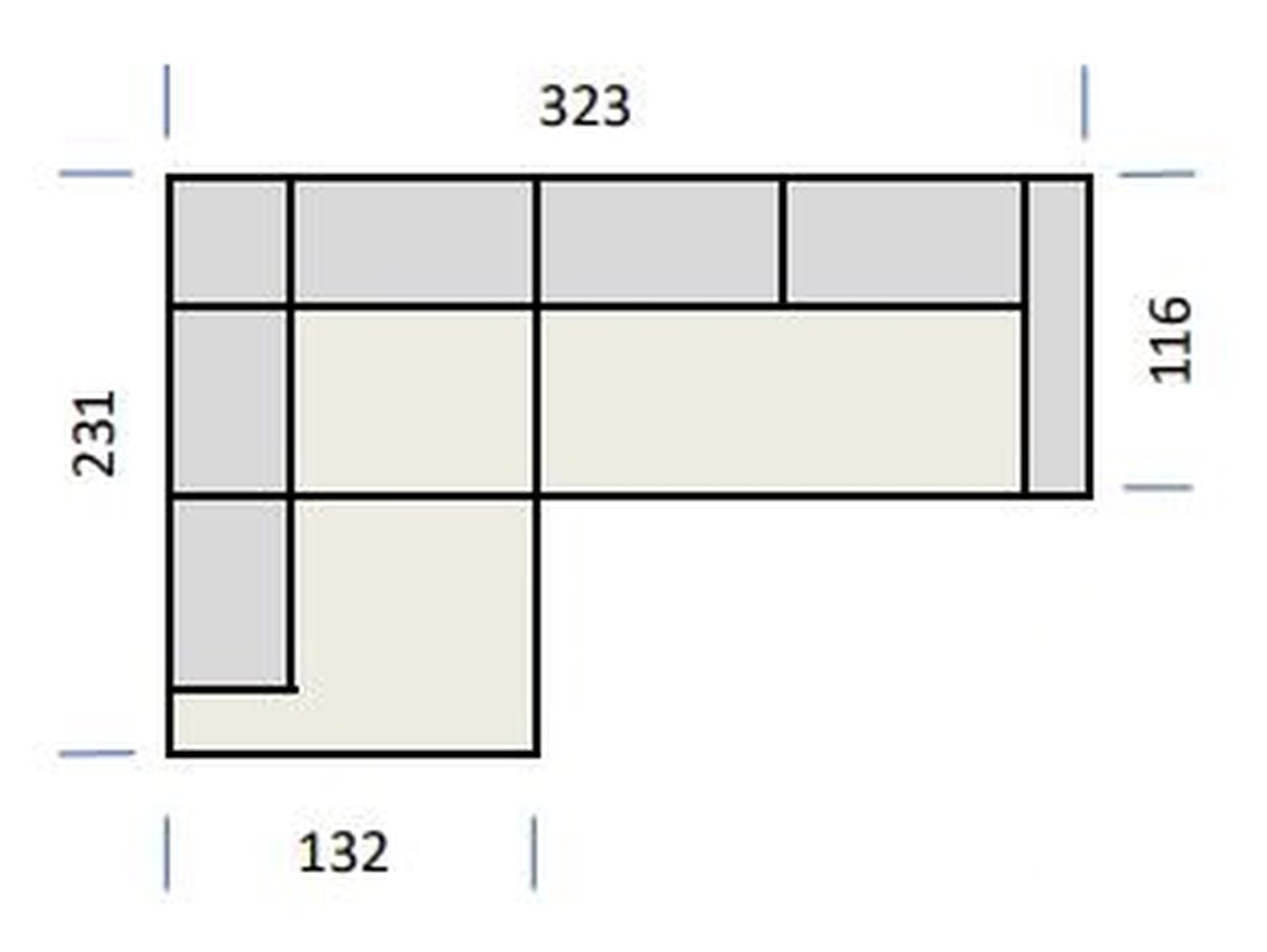 ✔Großzügige Eckgarnitur mit Stellvariante Ottomane rechts bietet viel Platz auf 323 x 231 cm.
