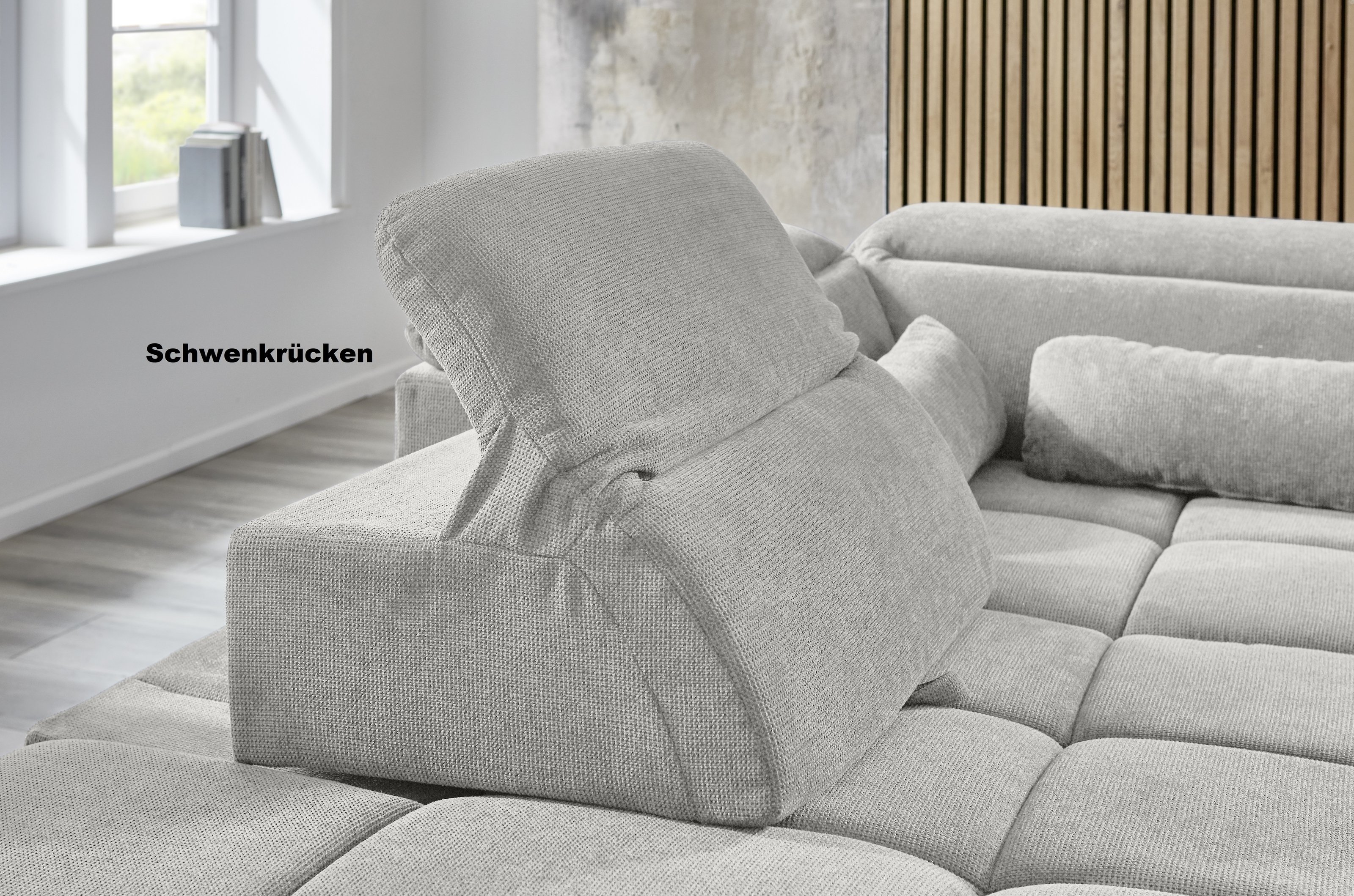Donaugh Polstergarnitur – Ecksofa mit Ottomane rechts und Kopfteilverstellung