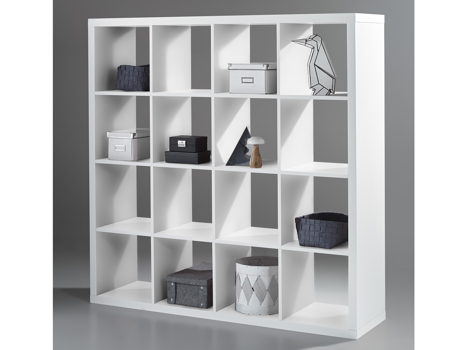 Der Raumteiler ist dank seines 40 mm starken Korpus und der 16 mm starken Zwischenböden sehr stabil. Er eignet sich problemlos für Bücher, Deko-Objekte und andere Gegenstände des täglichen Gebrauchs.