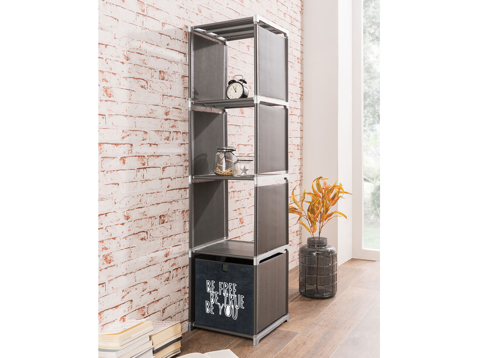 Das freiraum Steckregal in Säulenform bringt moderne Ordnung in dein Zuhause – perfekt für Bad, Flur oder Wohnzimmer. Mit vier Ablagefächern bietet es viel Stauraum auf kompaktem Raum und passt dank schlichter Anthrazit-Optik zu jedem Einrichtungsstil.