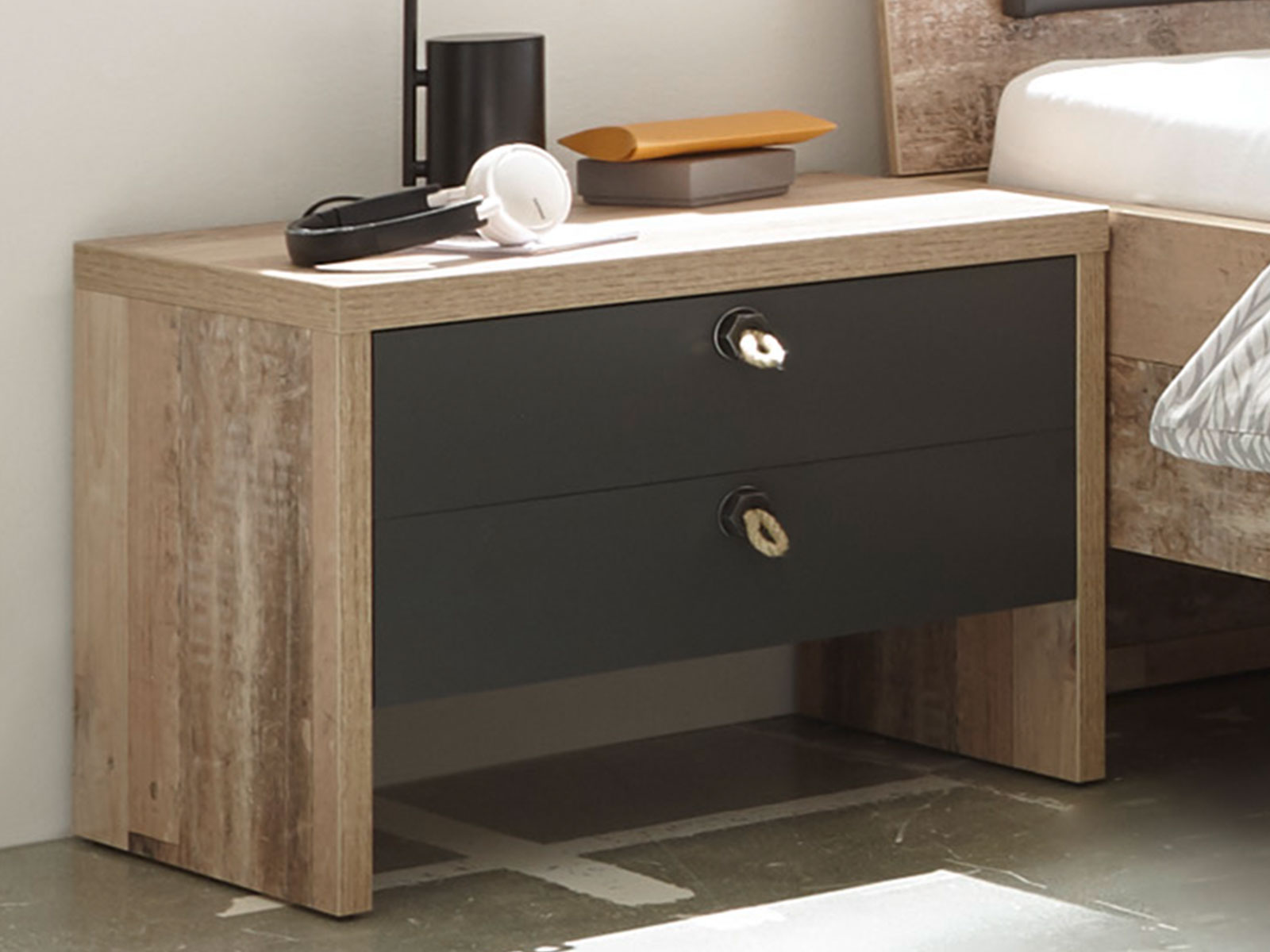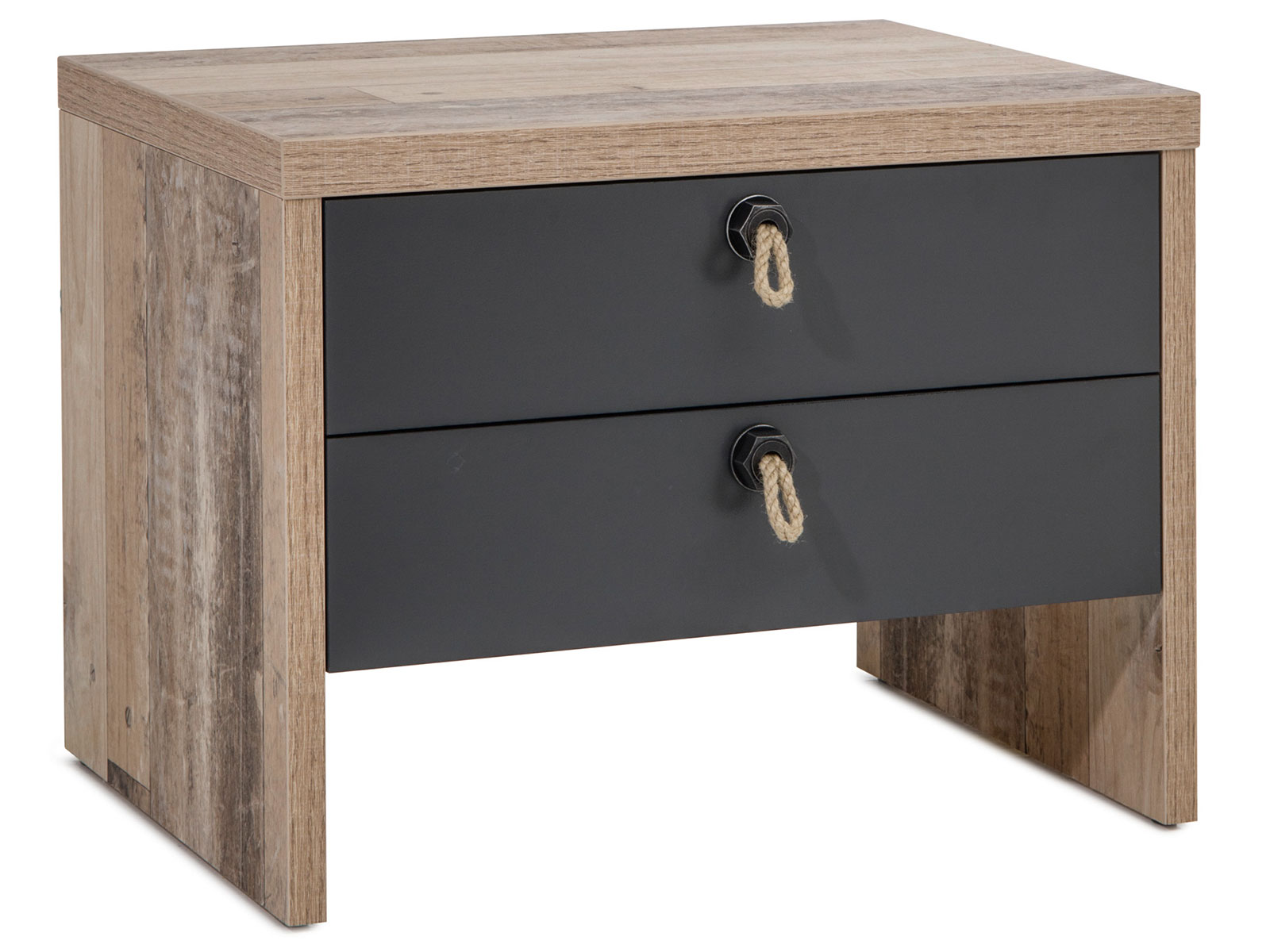 Gefertigt aus robuster Spanplatte in Old Style hell Nachbildung mit eleganten Absetzungen in Anthrazit, kombiniert "Maila I" eine charakterstarke Holzoptik mit moderner Linienführung. Die hochwertige Holznachbildung mit täuschend echter Maserung unterstreicht den rustikalen Charme und fügt sich in viele Wohnstile ein.