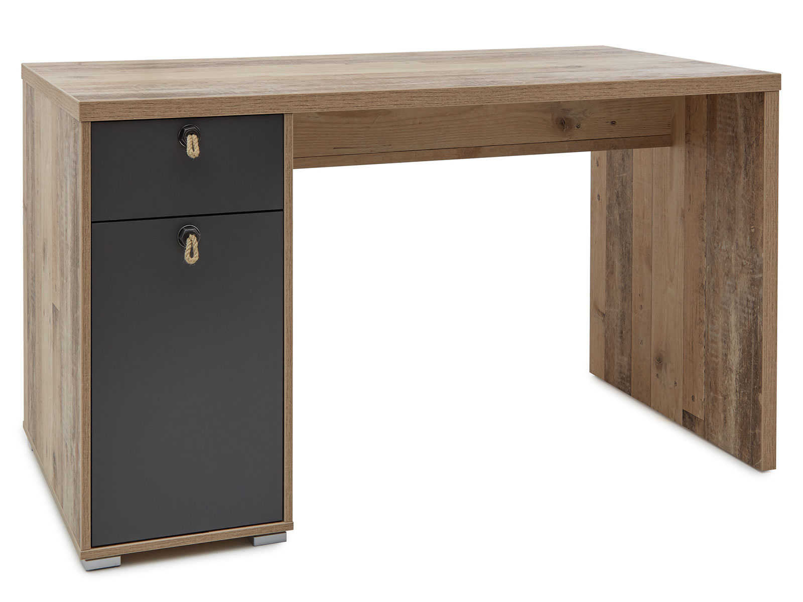 [metaDescription] => Moderner Schreibtisch aus Spanplatte in Old Style hell Nachbildung, Absetzungen in Anthrazit mit 1 Holztür, 1 Schubkasten und 1 Einlegeboden Breite 130 cm,