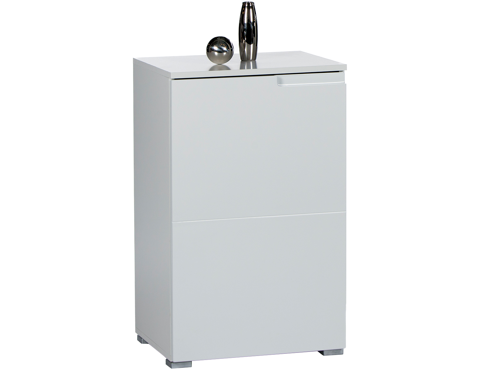Die Kombination aus weißem Korpus und Front in Weiß-Hochglanz verleiht dem Möbelstück eine helle, moderne Ausstrahlung. Fronten aus MDF und ein Korpus aus Spanplatte machen das Regal angenehm leicht und zugleich robust für den täglichen Gebrauch.
