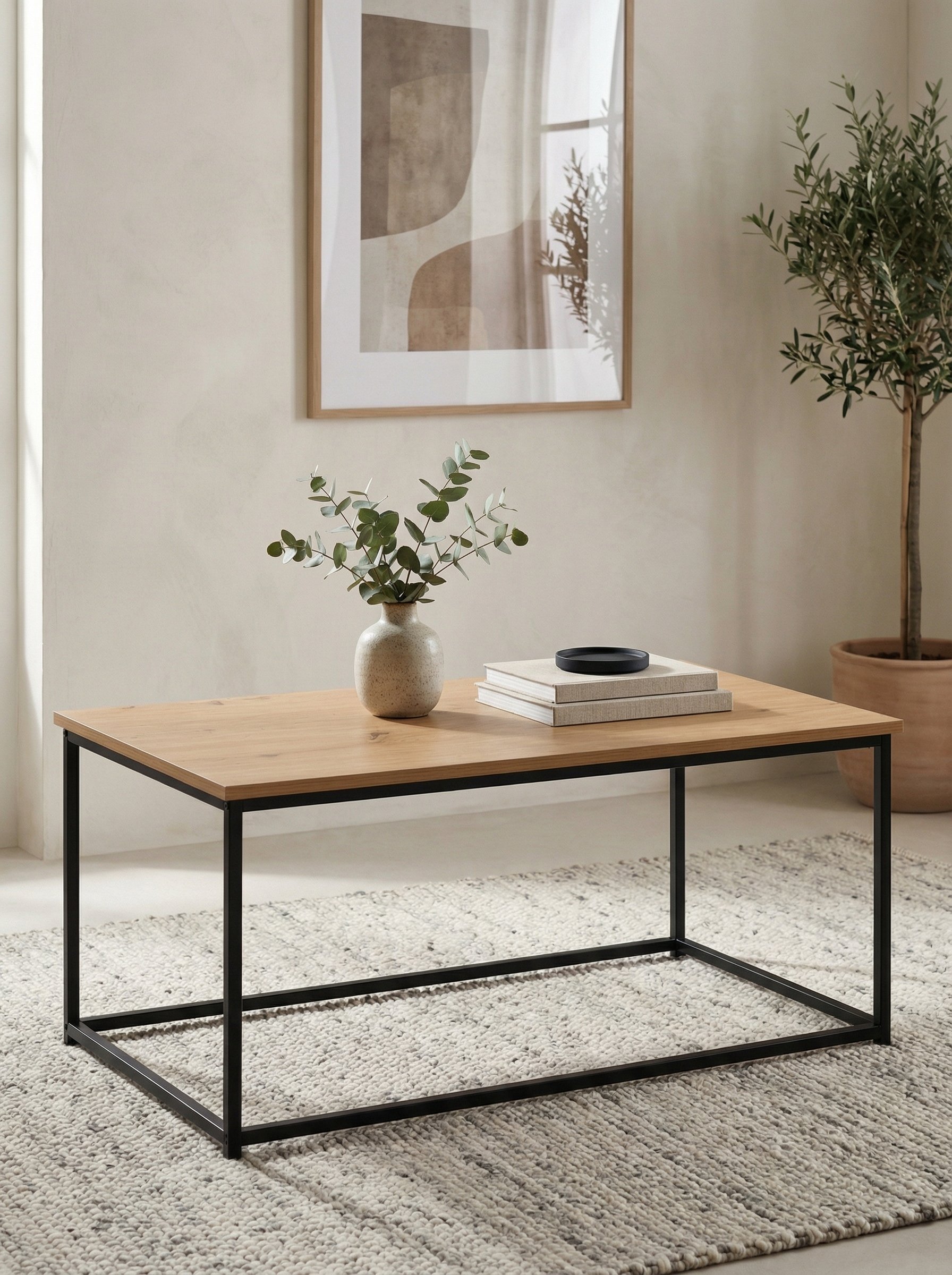 ✔Moderne Optik durch die Kombination aus warmem Dekor Artisan Oak und schwarzem Metallgestell – perfekt für zeitgemäße Wohnkonzepte.