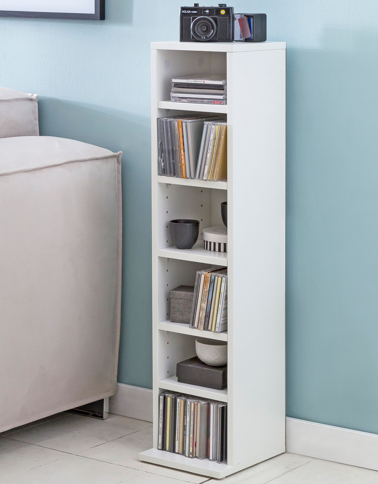 Schmales CD-Regal in Weiß – Ordnung für CDs, DVDs und mehr