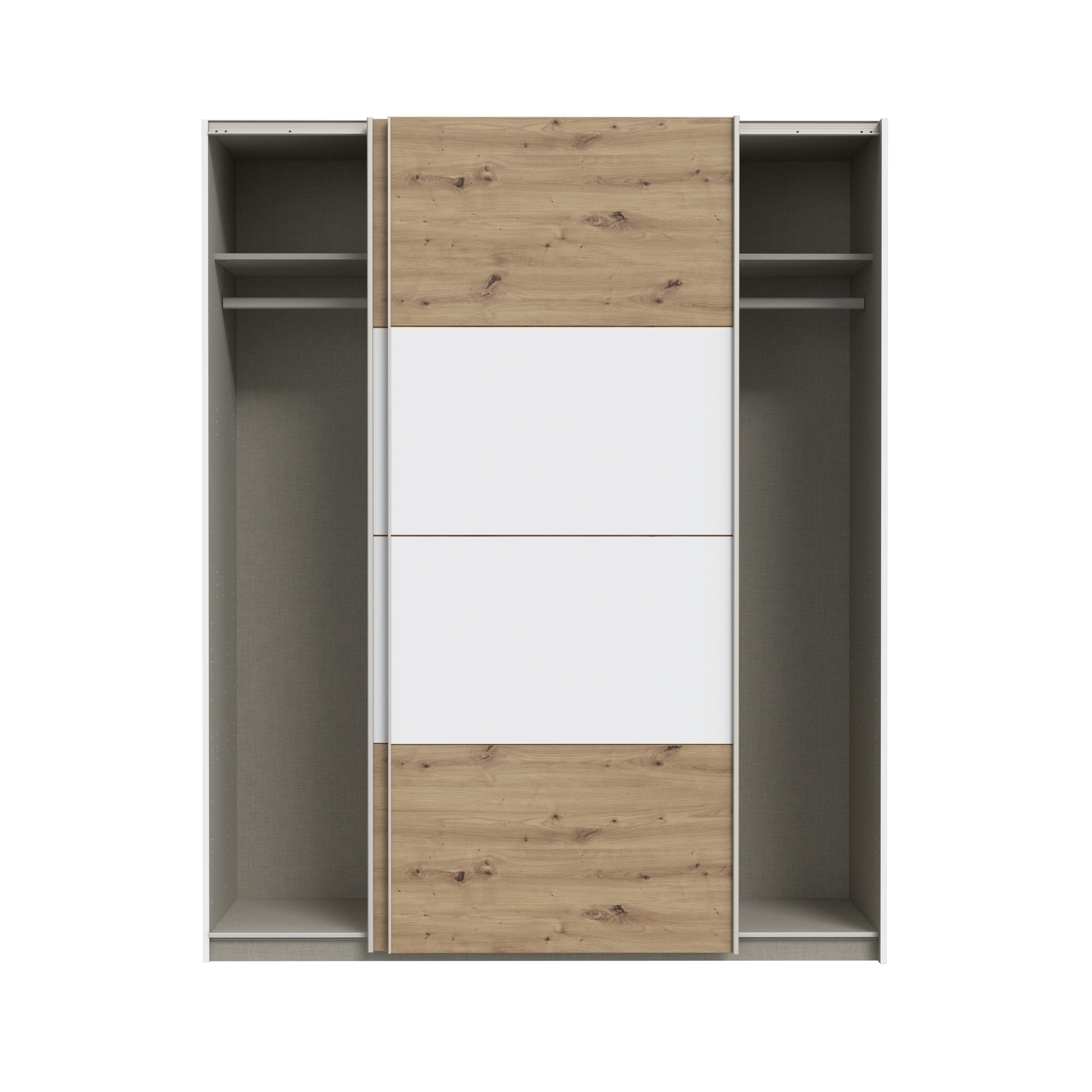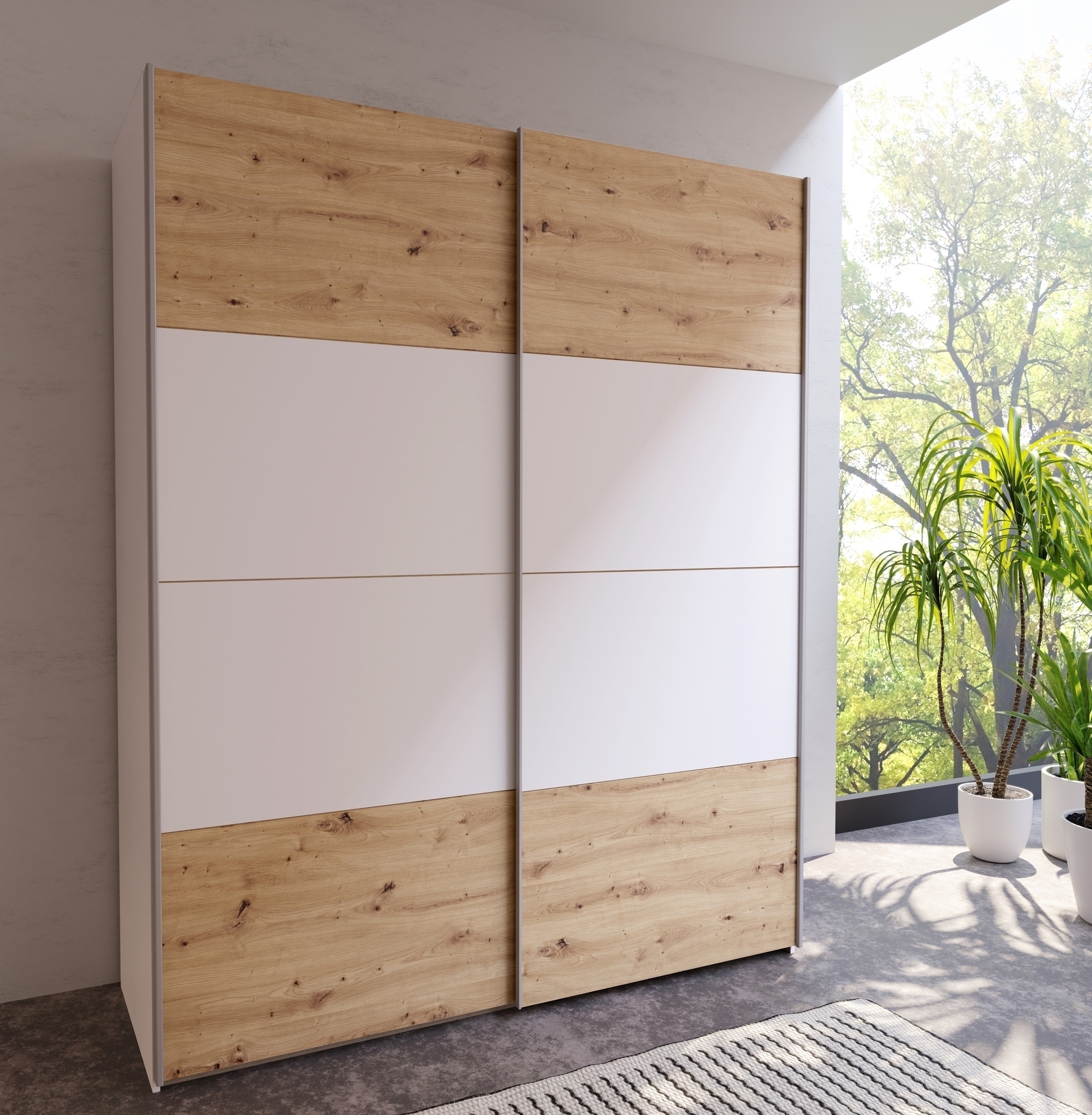 SCHACH&MATT 2 – moderner Schiebetürenschrank mit großzügigem Stauraum und eleganter Weiß/Artisan-Eiche-Optik