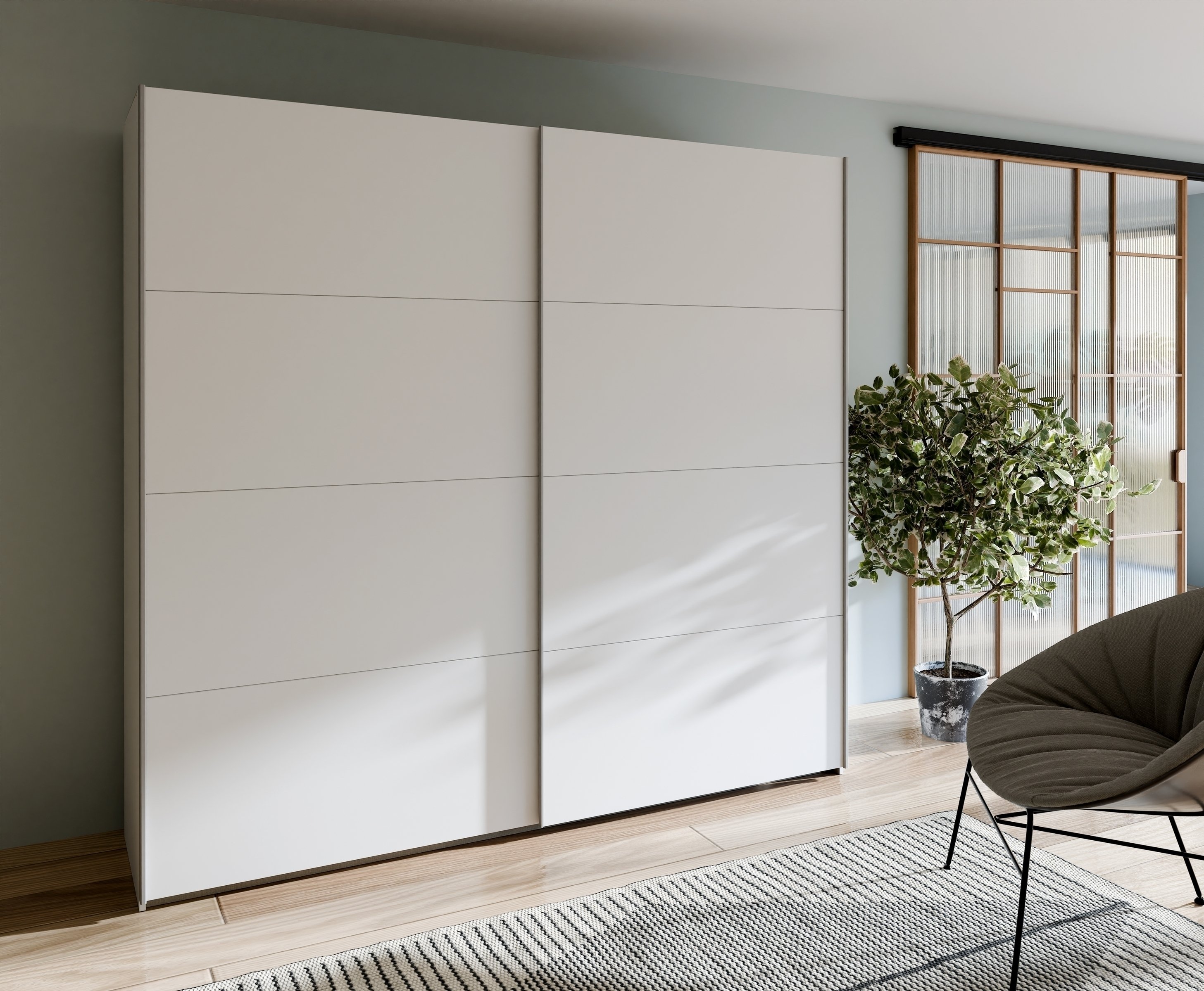 Moderner Schiebetürenschrank mit Spiegel und klarer Linienführung