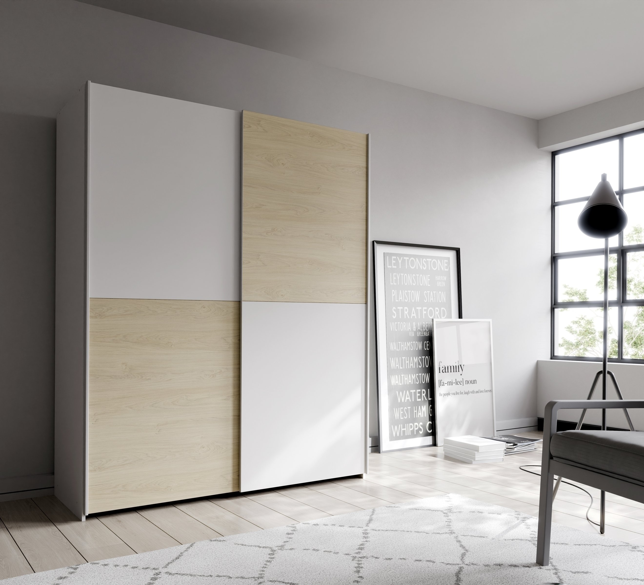 Schach&matt Kleiderschrank – Schiebetürenschrank mit viel Stauraum und moderner Optik in Weiß