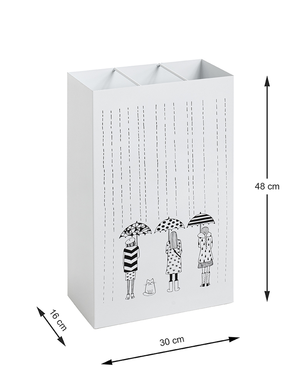 Mit 30 x 48 x 16 cm passt der Schirmständer auch in kleine Flure und bietet dennoch Platz für mehrere Regenschirme.