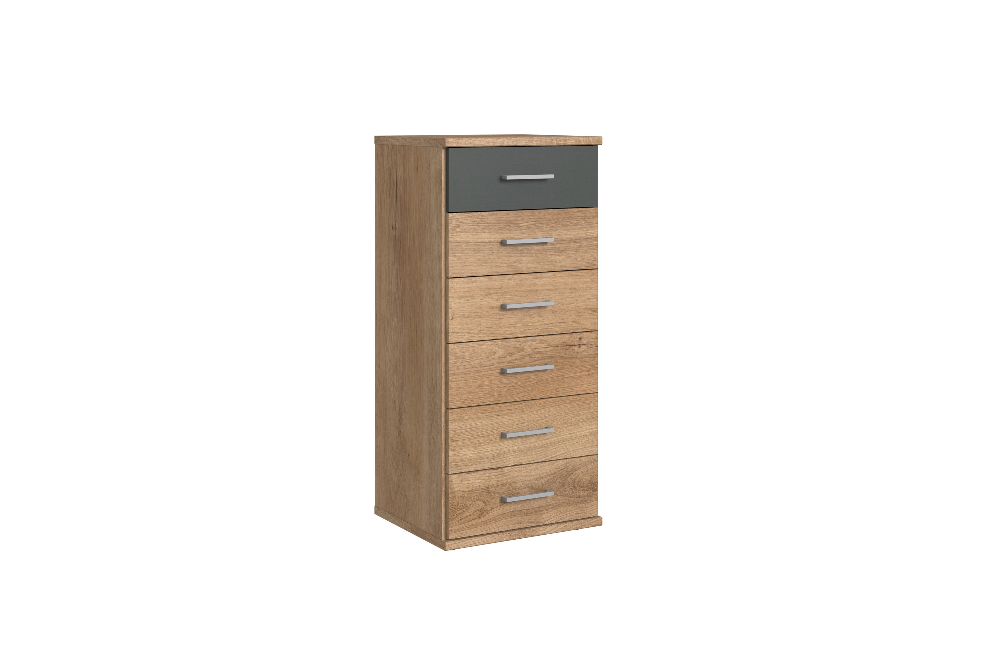 Die modische Optik in Plankeneiche-Nachbildung verbindet sich mit durchdachter Praktikabilität und ermöglicht Ihnen, Ihr Schranksystem flexibel zu erweitern. So schaffen Sie im Handumdrehen zusätzlichen Platz für Wäsche, Bettwäsche oder Accessoires und behalten dank klarer Formensprache stets den Überblick.