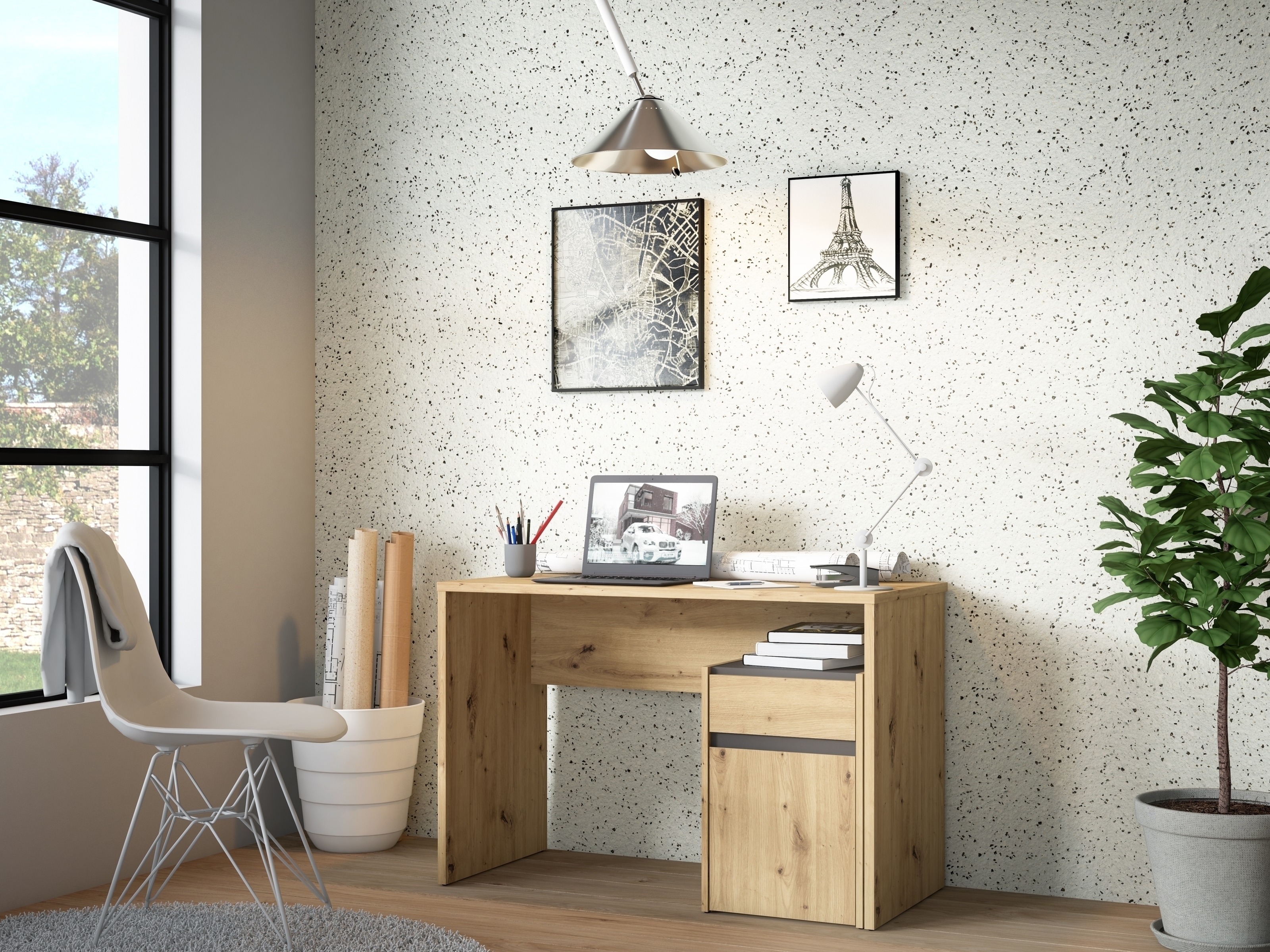 [Bullet-Point 2] => Die Uni Wolfram Grau/Artisan Eiche Farbkombination verleiht Ihrem Büro eine moderne und stilvolle Ästhetik, die sich nahtlos in jede Einrichtung einfügt.