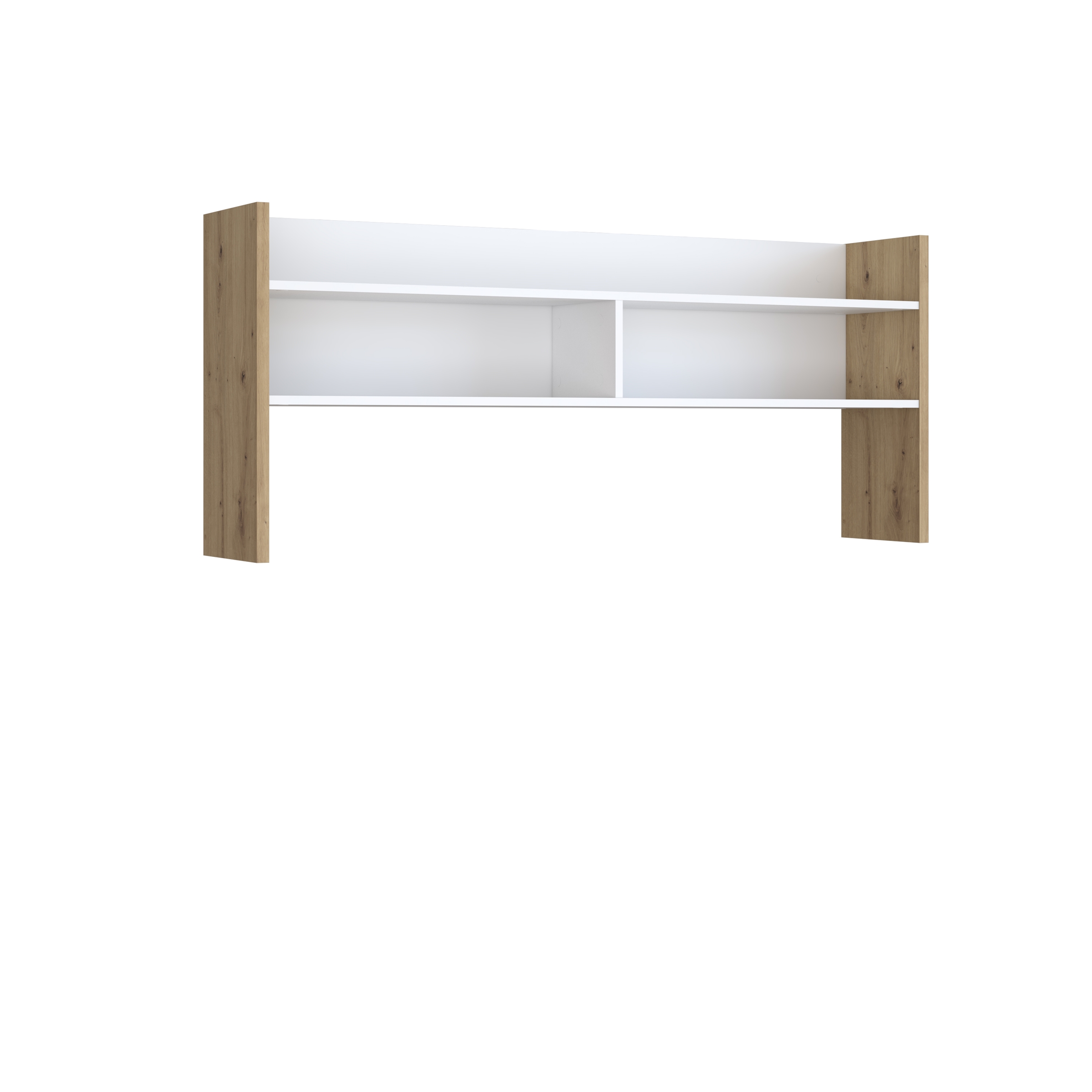 [Bullet-Point 4] => Mit zwei großzügigen Ablageböden bietet dieser Aufsatz ausreichend Platz für eine organisierte und effiziente Arbeitsumgebung.