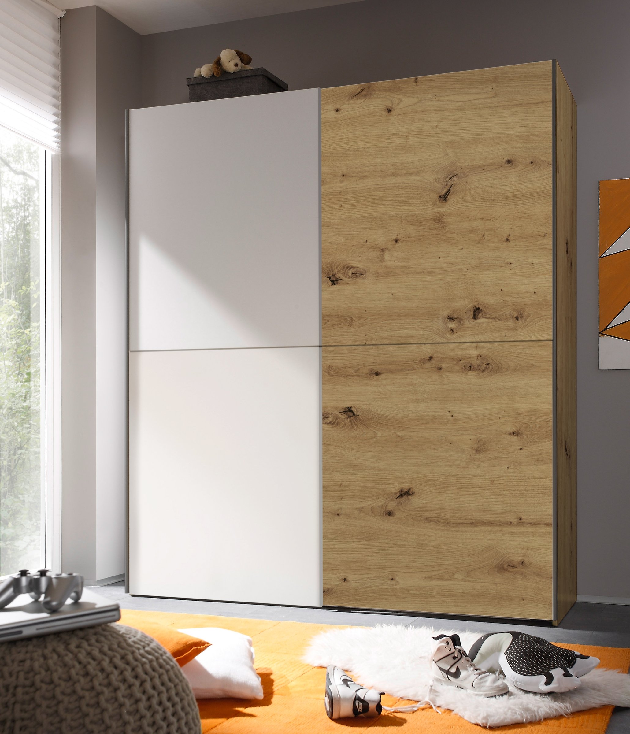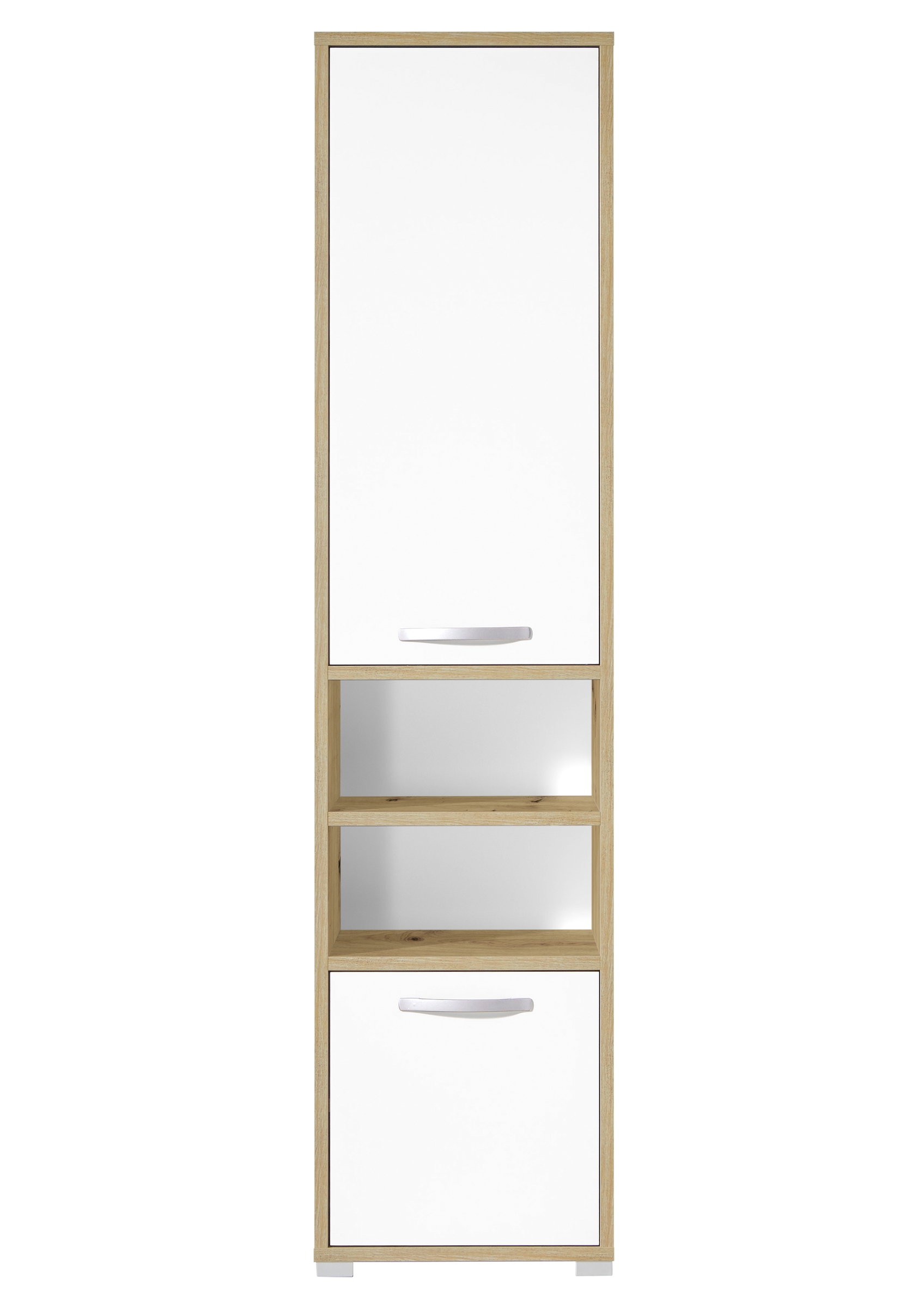 Der Korpus aus Spanplatte in Artisan Eiche Nachbildung mit weißer Front fügt sich harmonisch in moderne Wohnstile ein und lässt sich leicht mit vorhandenen Möbeln kombinieren. Dank der mitgelieferten Aufbauanleitung gelingt die Montage unkompliziert.