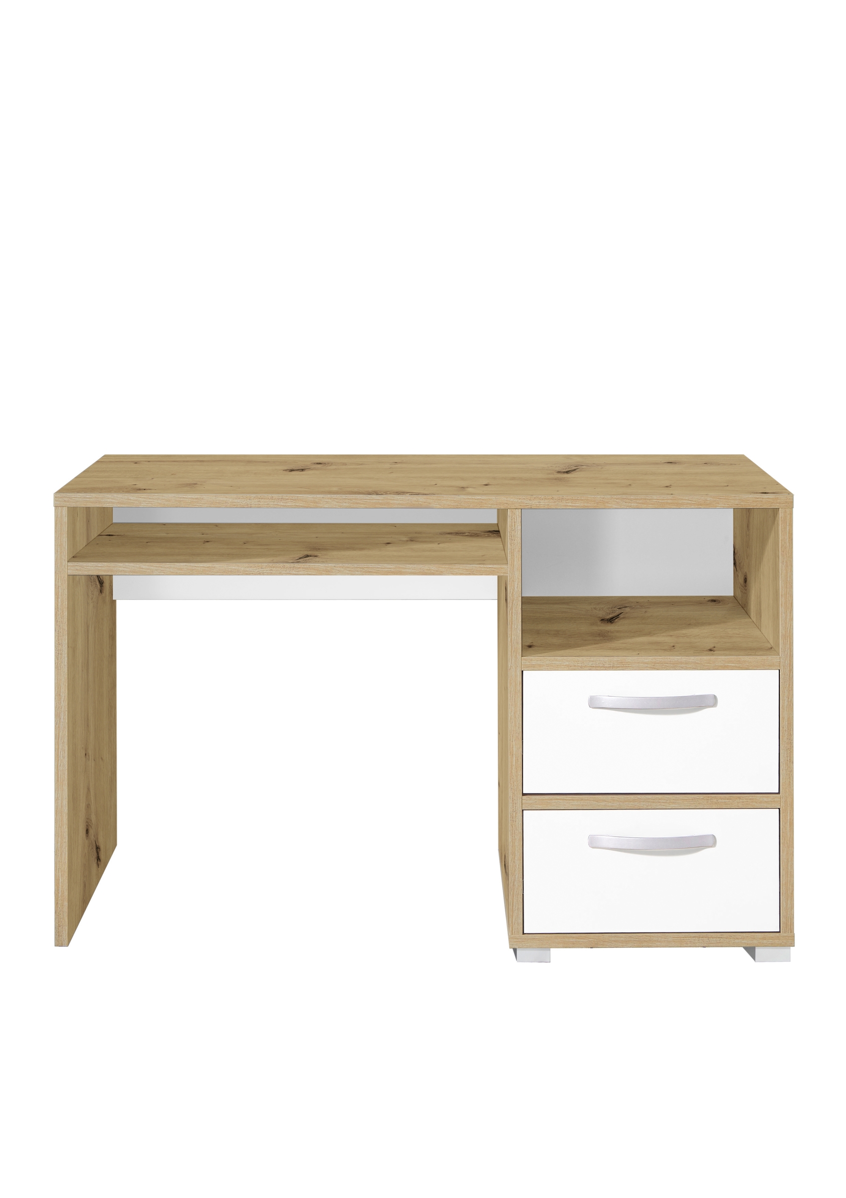 Der Schreibtisch Melina bietet eine moderne Optik in Artisan Eiche Nachbildung und Weiß für Kinder-, Jugend- oder Arbeitszimmer.