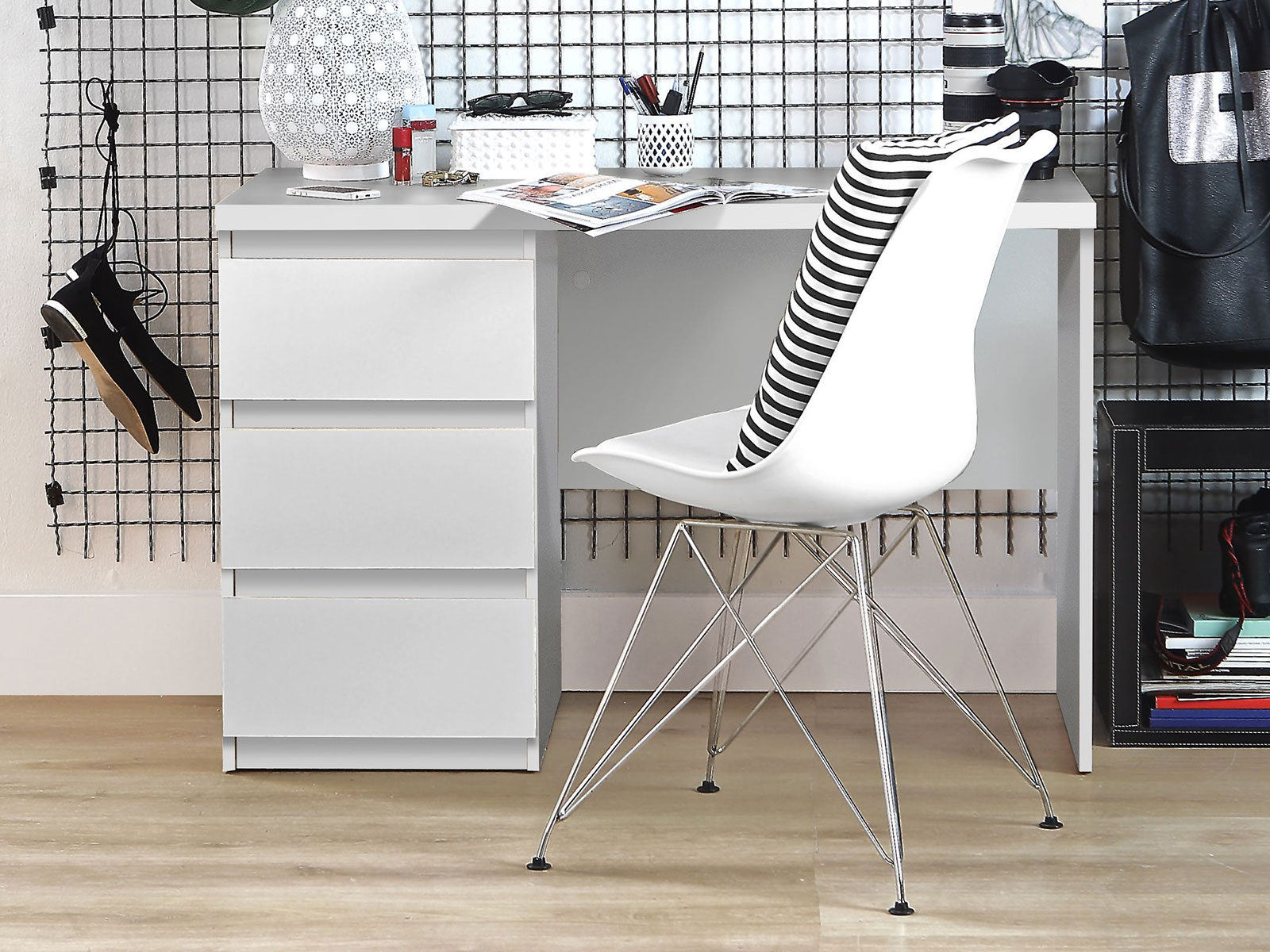 [metaDescription] => Moderner Schreibtisch aus Spanplatte in Weiß Matt mit 3 Schubkästen Breite 108 cm, Höhe 72,5 cm, Tiefe 50 cm