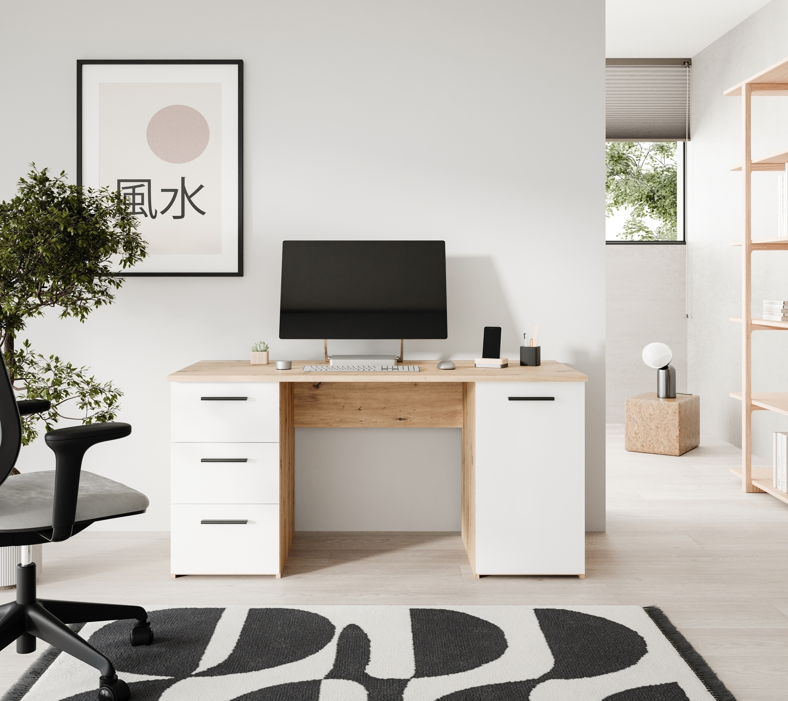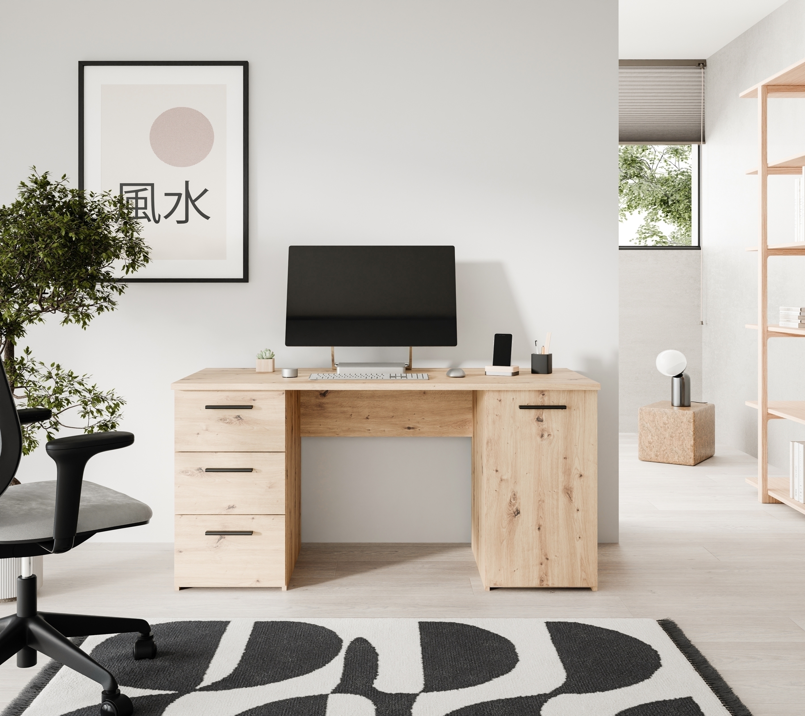 [1] => Schreibtisch-NET307-3-Schuebe-1-Tuer-Artisan-Eiche-Dekor-1382x753x60cm-BxHxT