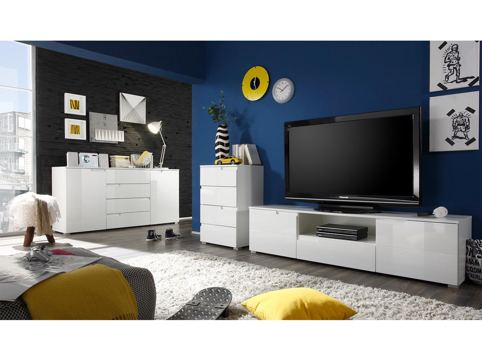 [metaDescription] => TV-Lowboard, Korpus aus Spanplatte in Weiß und Front aus MDF in Weiß-Hochglanz mit 1 Schubkasten, 2 Türen und 1 offenes Fach Breite 165 cm, Höhe 42 cm, Tief