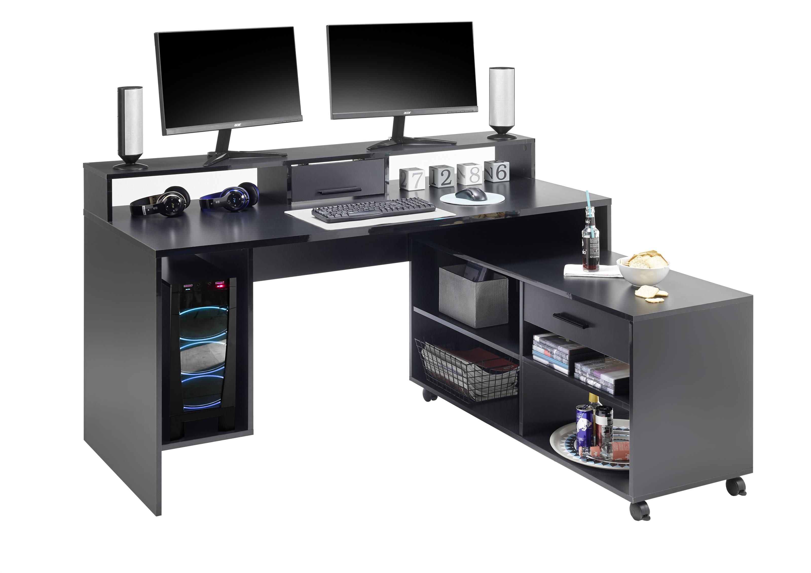 Der Schreibtisch „Thasos I“ ist wie gemacht für Gaming-Sessions und lange Arbeitsphasen und kombiniert eine großzügige Arbeitsfläche mit durchdachtem Stauraum. Durch die kompakte, gradlinige Form findet er im Arbeitszimmer oder Jugendzimmer seinen Platz und bietet mit Schreibtisch und Rollcontainer vielfältige Einsatzmöglichkeiten.