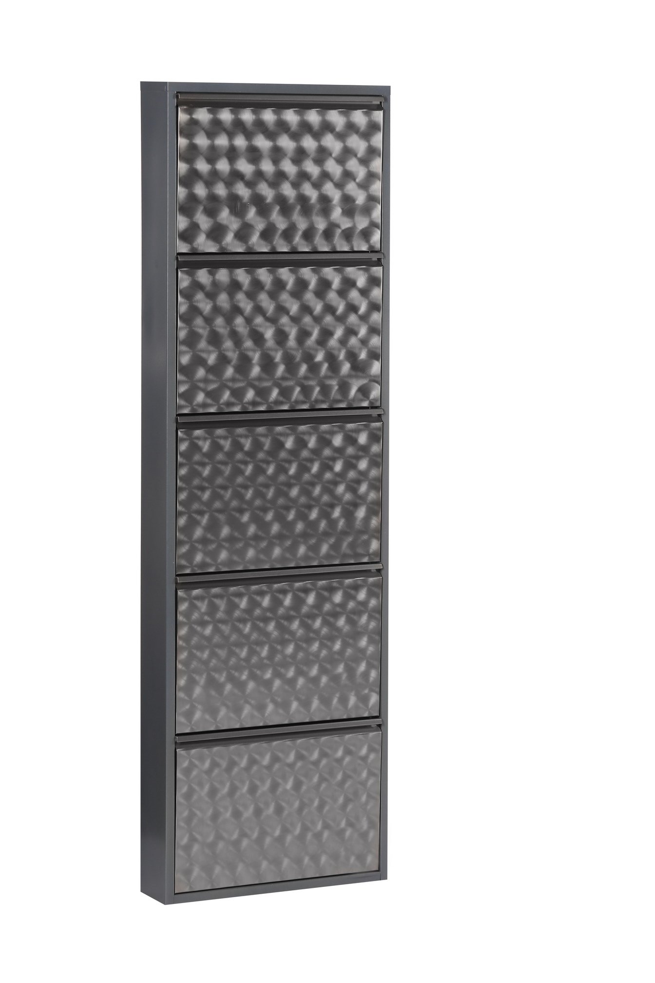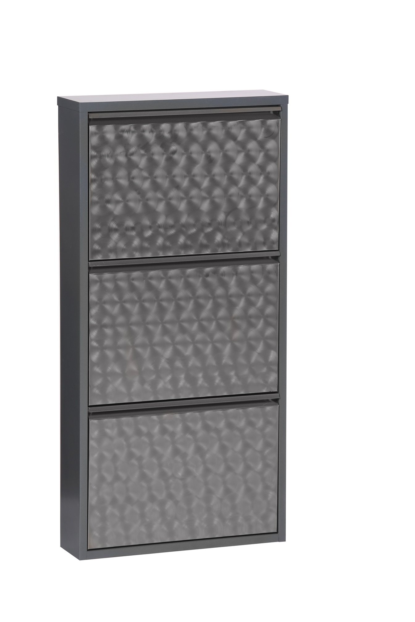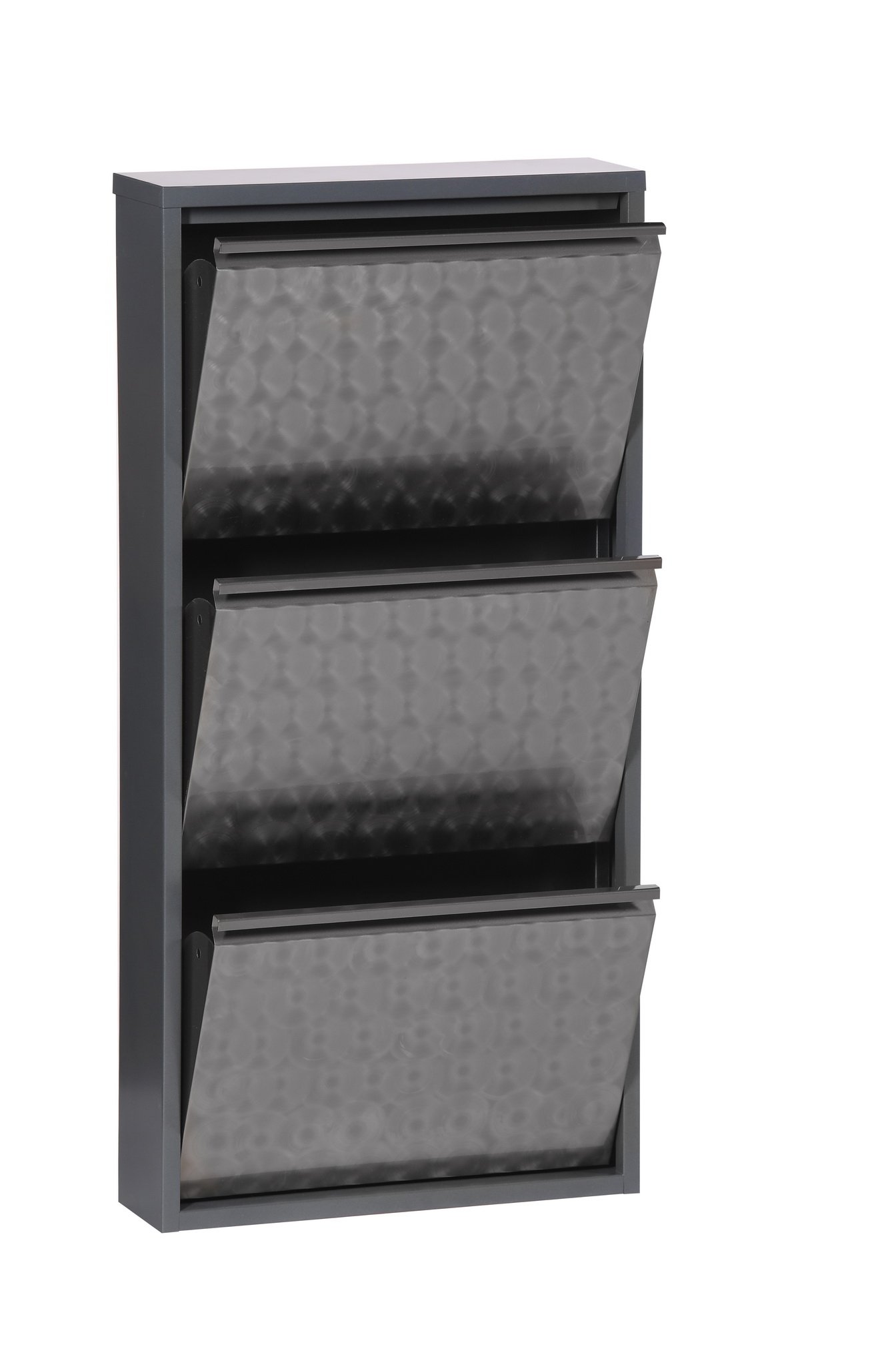 [BulletPoints] => Schuhkipper mit kompakten Maßen von 50 cm Breite, 72 cm Höhe und 13,5 cm Tiefe (B/H/T cm), ideal für schmale Flure und platzsparende Schuhaufbewahrung im Eingangsbereich;Moderner Schuhkipper aus geflextem Metall in schwarz-anthrazit, der mit klarer Linienführung überzeugt und sich perfekt in zeitgemäße und urbane Wohnkonzepte einfügt;Zwei funktionale Klappen bieten Stauraum für bis zu ca. 6 Schuhe bzw. 3 Paar und sorgen für eine übersichtliche, staubgeschützte und griffbereite Aufbewahrung;Stabiler Schuhkipper aus Metall mit pflegeleichter Oberfläche, langlebig verarbeitet und optimal geeignet für stark frequentierte Bereiche wie Flur oder Diele;Schuhkipper wird komplett montiert geliefert und ist sofort einsatzbereit, kein Aufbau erforderlich – einfach auspacken, aufstellen und direkt Ordnung schaffen