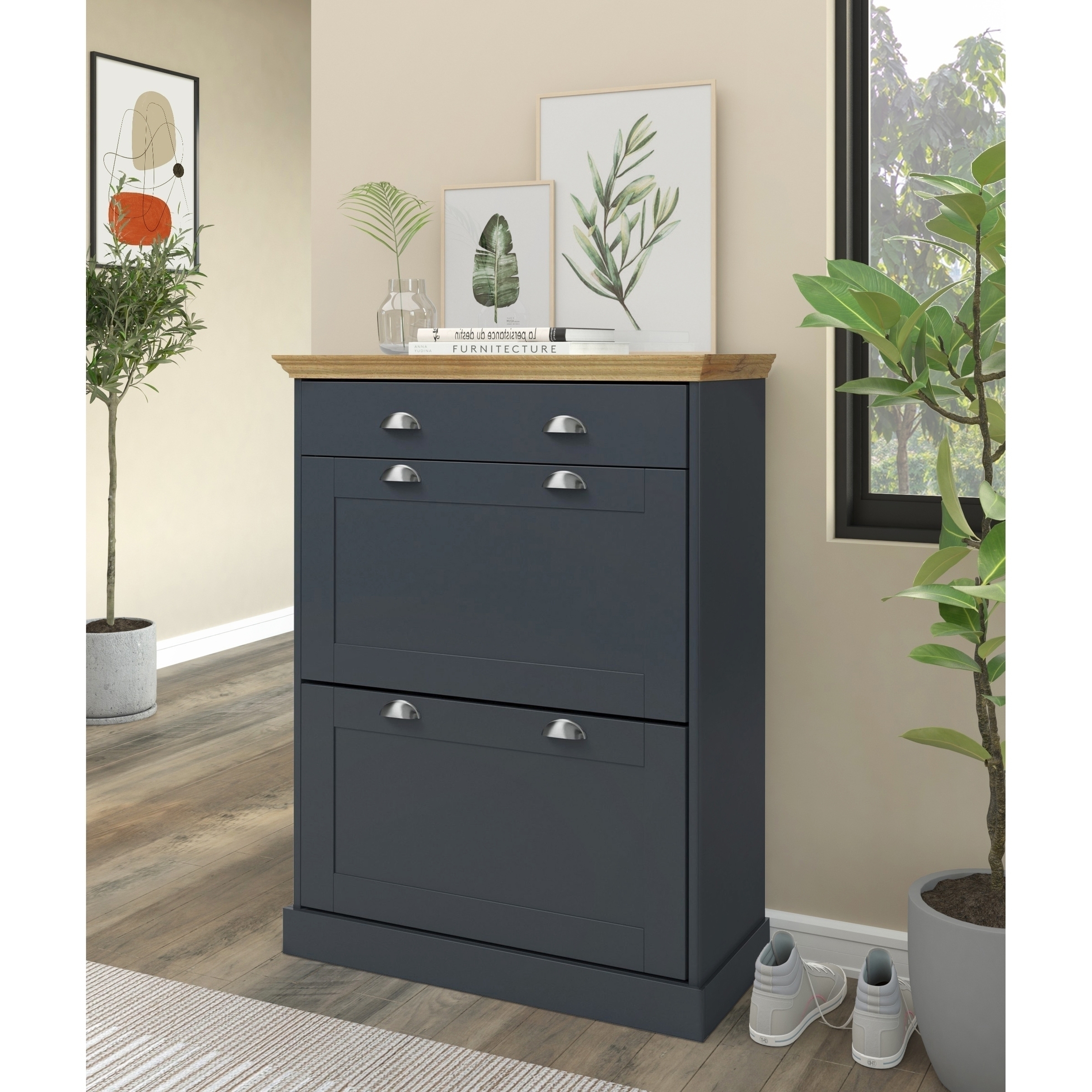 Motala Schuhschrank in Anthrazit – Schuhkipper mit 3 Klappen und kompakter Bauweise