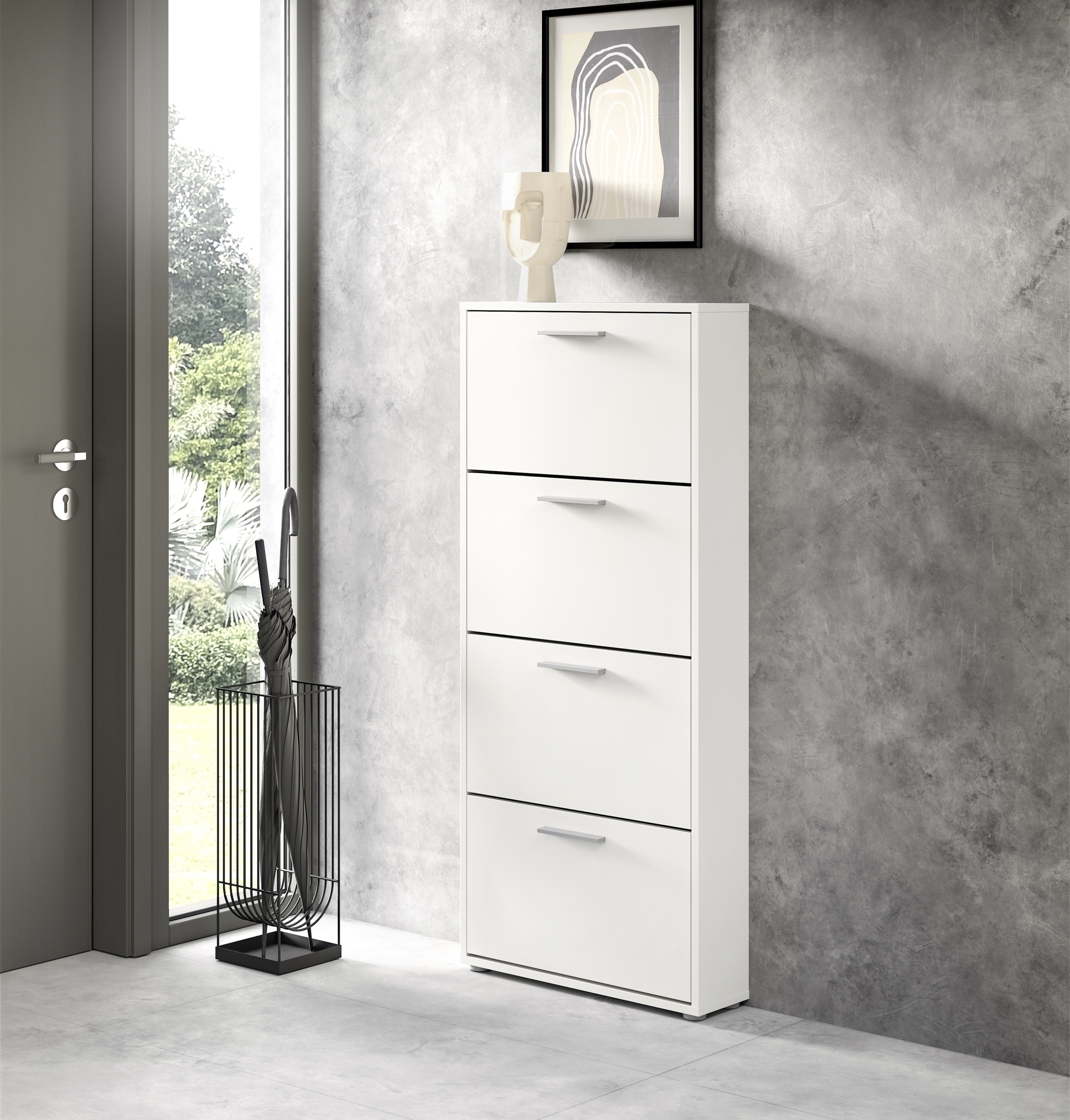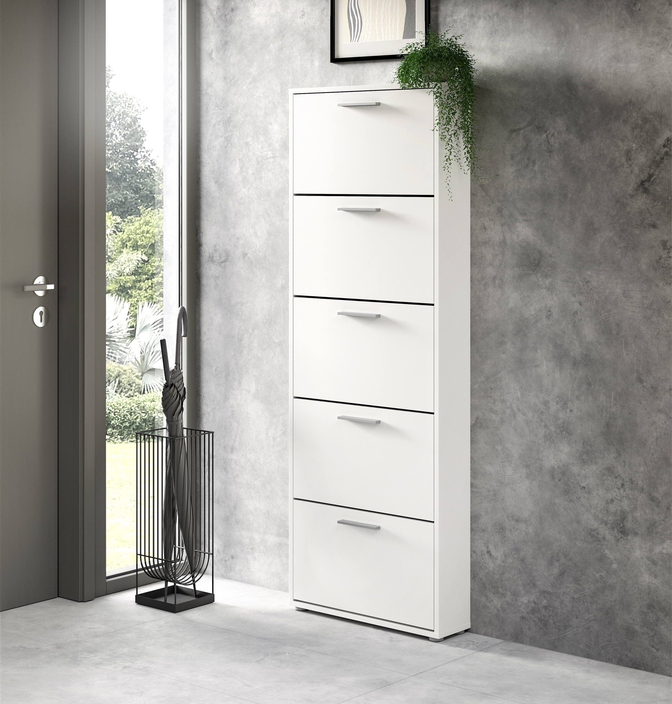 [BulletPoints] => MODERN - Der Schuhkipper besticht durch sein modernes Design in frischem Weiß, das durch silberfarbene Stangengriffe ergänzt wird;VIEL STAURAUM - Mit 5 Klappen bietet der Schuhkipper großzügigen Stauraum und sorgt dafür, dass Schuhe platzsparend verstaut sind;VERSCHIEDENE AUSFÜHRUNGEN - Der Schuhkipper ist in verschiedenen Größen und Farben erhältlich, sodass er sich optimal anpassen lässt.;LEICHTE MONTAGE - Lieferung erfolgt zerlegt. Das Montage-Material ist inklusive. Maße: 59 x 169 x 17 cm (B/H/T).;Möbel sind unsere Leidenschaft. Wir stehen für beste Qualität und aus diesem Grund arbeiten wir nur mit sorgfältig ausgewählten und namhaften Lieferanten