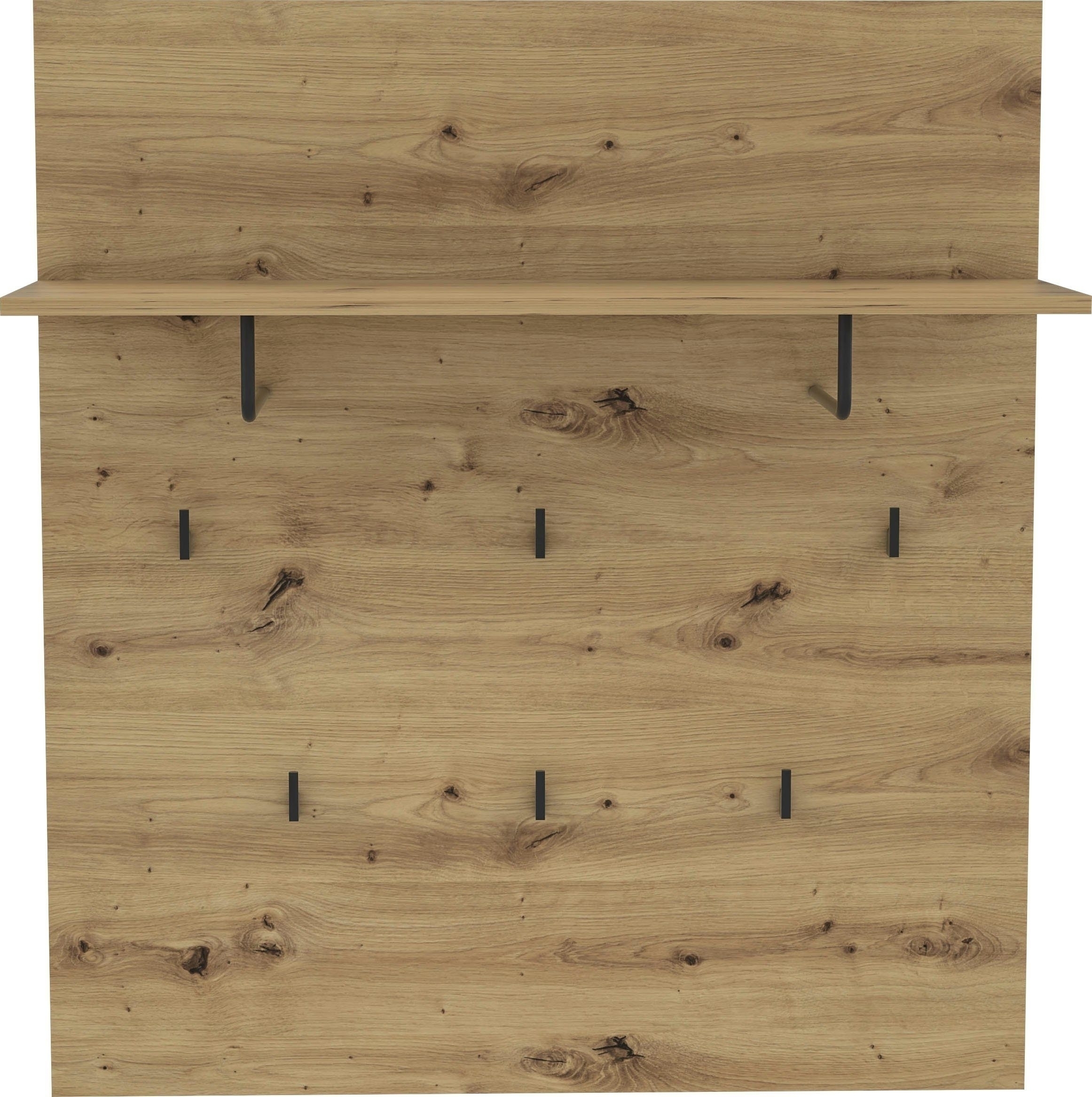 [BulletPoints] => Optimale Größe für jeden Raum: Mit den Abmessungen B/H/T 89,4 cm x 44,7 cm x 41,5 cm passt die "Travis" Sitzbank ideal in verschiedene Wohnbereiche. Diese Größe bietet genügend Sitzfläche, ohne zu viel Platz einzunehmen, ideal für Wohnzimmer, Flure oder Schlafzimmer;Hochwertige Materialien für Langlebigkeit: "Travis" ist aus robustem Holzwerkstoff gefertigt, was eine hohe Stabilität und Langlebigkeit gewährleistet. Die Front aus Dekorfolie und Holzwerkstoff ergänzt den Korpus aus Holzwerkstoff und Kunststoff, was eine pflegeleichte und widerstandsfähige Oberfläche schafft;Elegantes Farbschema für vielseitige Einrichtungsstile: Die Kombination aus Artisan Eiche und schwarzer Eiche verleiht der Sitzbank eine moderne und zugleich zeitlose Ausstrahlung. Dieses Farbschema harmoniert hervorragend mit verschiedenen Einrichtungsstilen und bringt eine elegante Note in jeden Raum;Komfort und Funktionalität vereint: Die Sitzfläche, bequem gepolstert und bezogen mit hochwertigem Kunstleder in Schwarz, bietet optimalen Sitzkomfort. Zusätzlich erweitert eine Schublade mit genügend Stauraum und ein Innenfach die Funktionalität der Sitzbank, ideal zur Aufbewahrung von Alltagsgegenständen;Leichte Montage und Pflege: Die "Travis" Sitzbank wird zerlegt geliefert, kann aber dank der detaillierten Aufbauanleitung und mit Unterstützung einer zweiten Person leicht montiert werden. Für die Pflege reicht ein einfaches trockenes Abwischen, was die Instandhaltung besonders unkompliziert macht