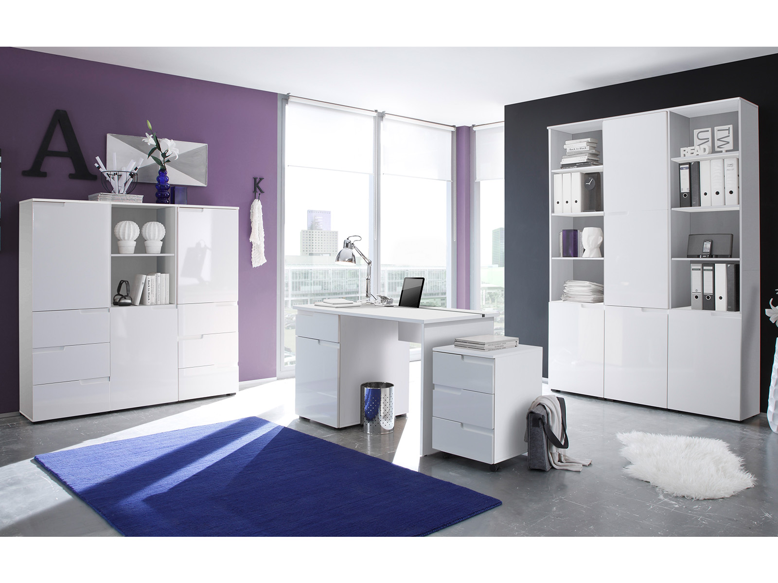 [Bullet-Point 3] => Leuchtend schön - Mit einer Kombination aus strahlendem Weiß-Hochglanz und frischem Weiß sorgt das Regal "Suzette I" für einen Glanzpunkt in jedem Arbeitszimmer.