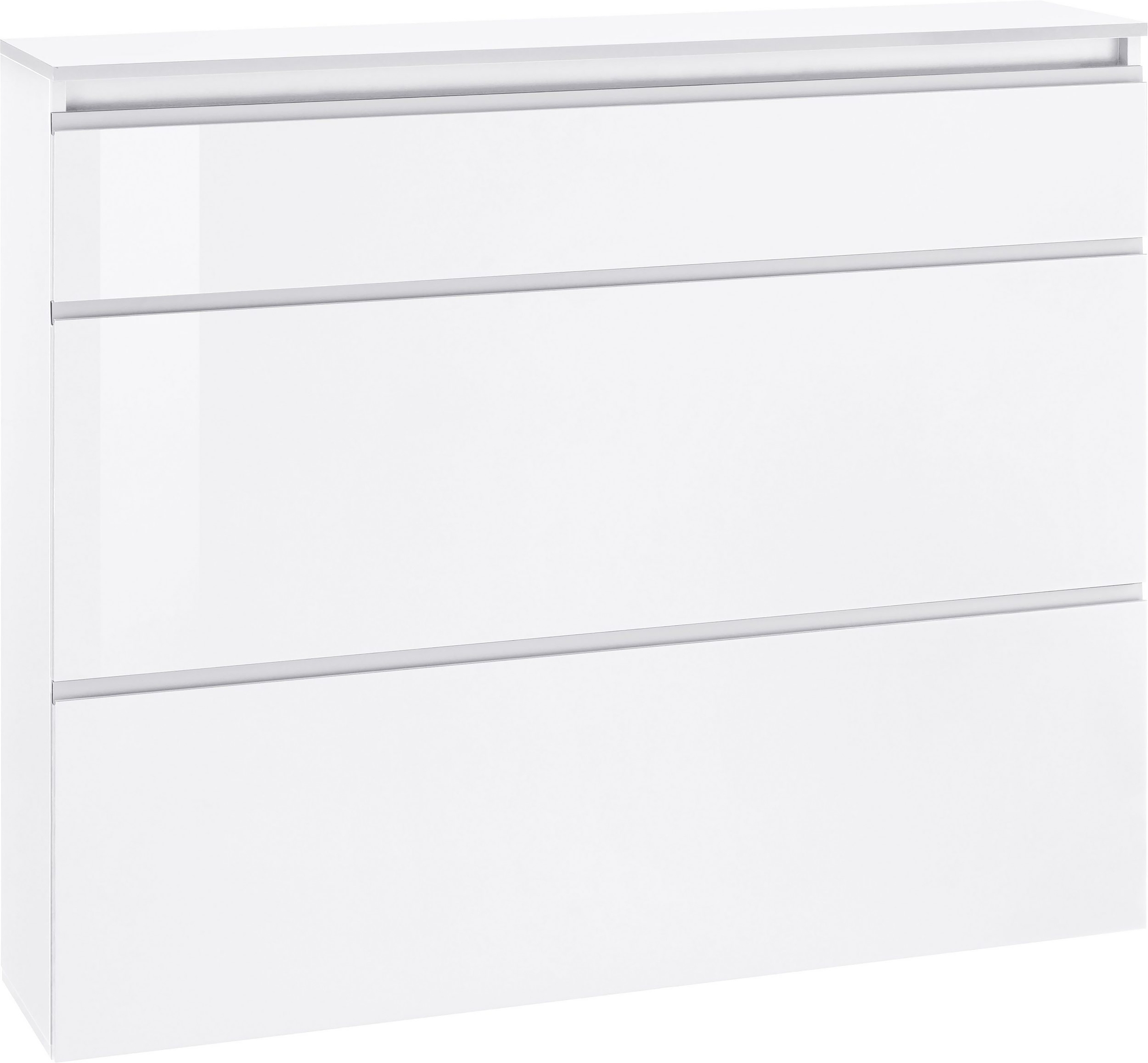 möbelando Schuhschrank – moderner Schuhschrank mit 3 Klappen in Weiß Hochglanz