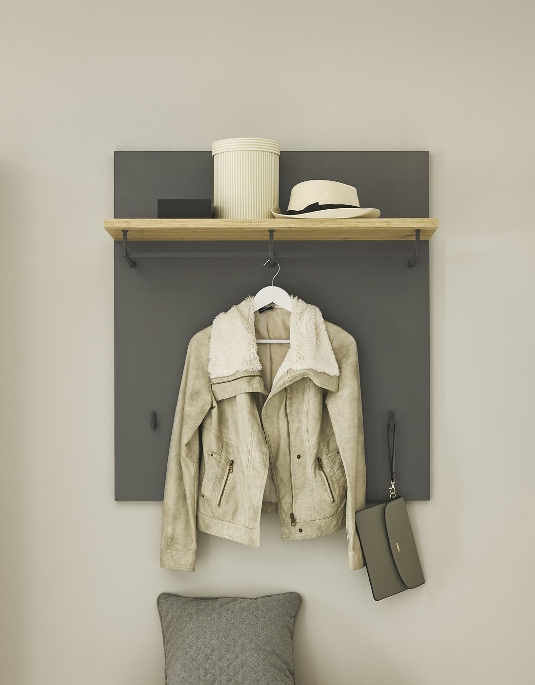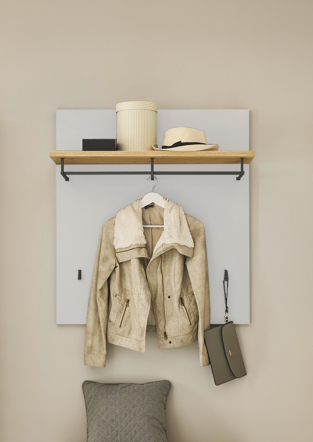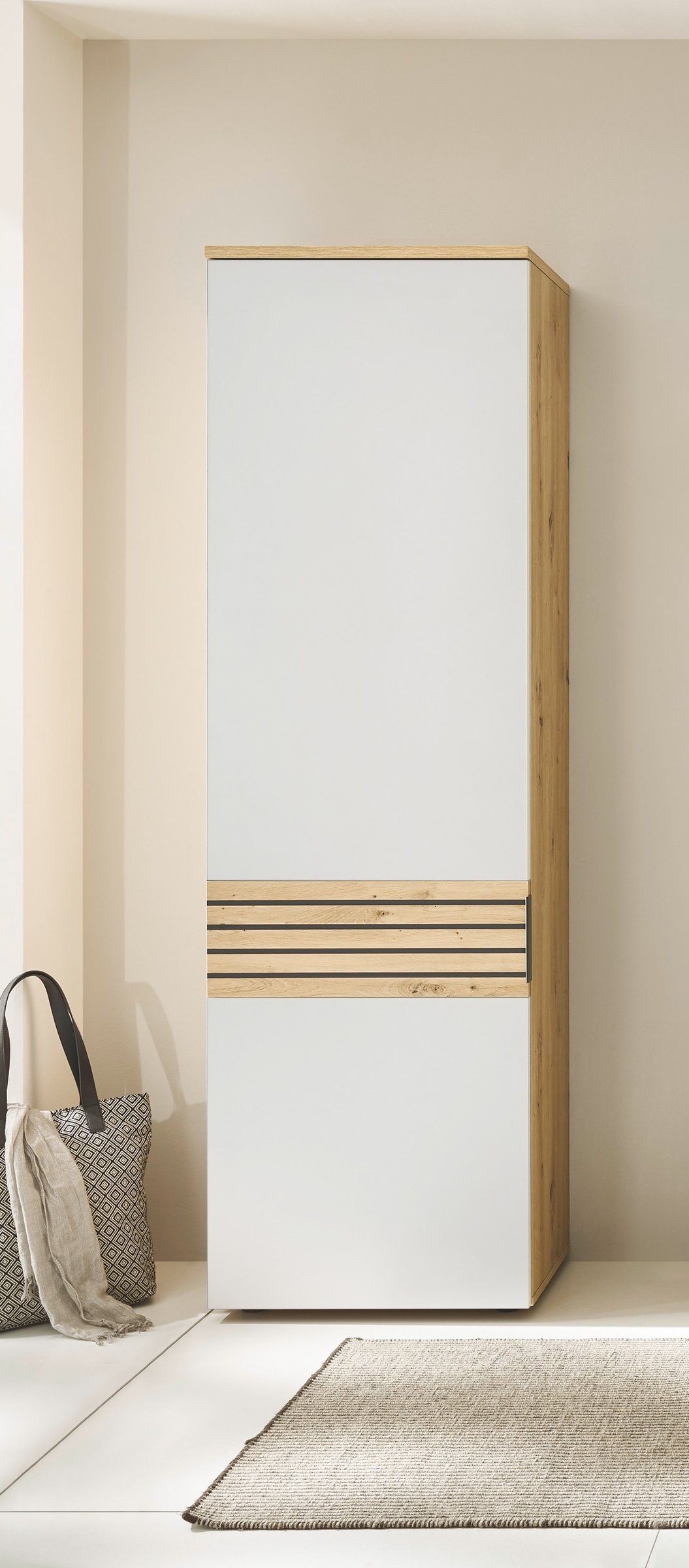 ✔Die weiß matte Front mit Artisan-Eiche-Absetzungen passt hervorragend zu modernen Garderobenlösungen.