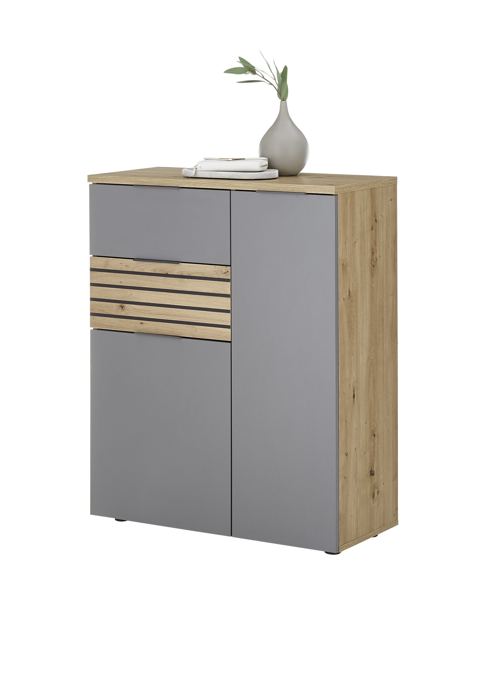 [cWert] => Ästhetisches Design: Die Dekorfolie in Grau und markante Absetzungen in Artisan Eiche verleihen dem Schuhschrank eine moderne und ansprechende Optik.