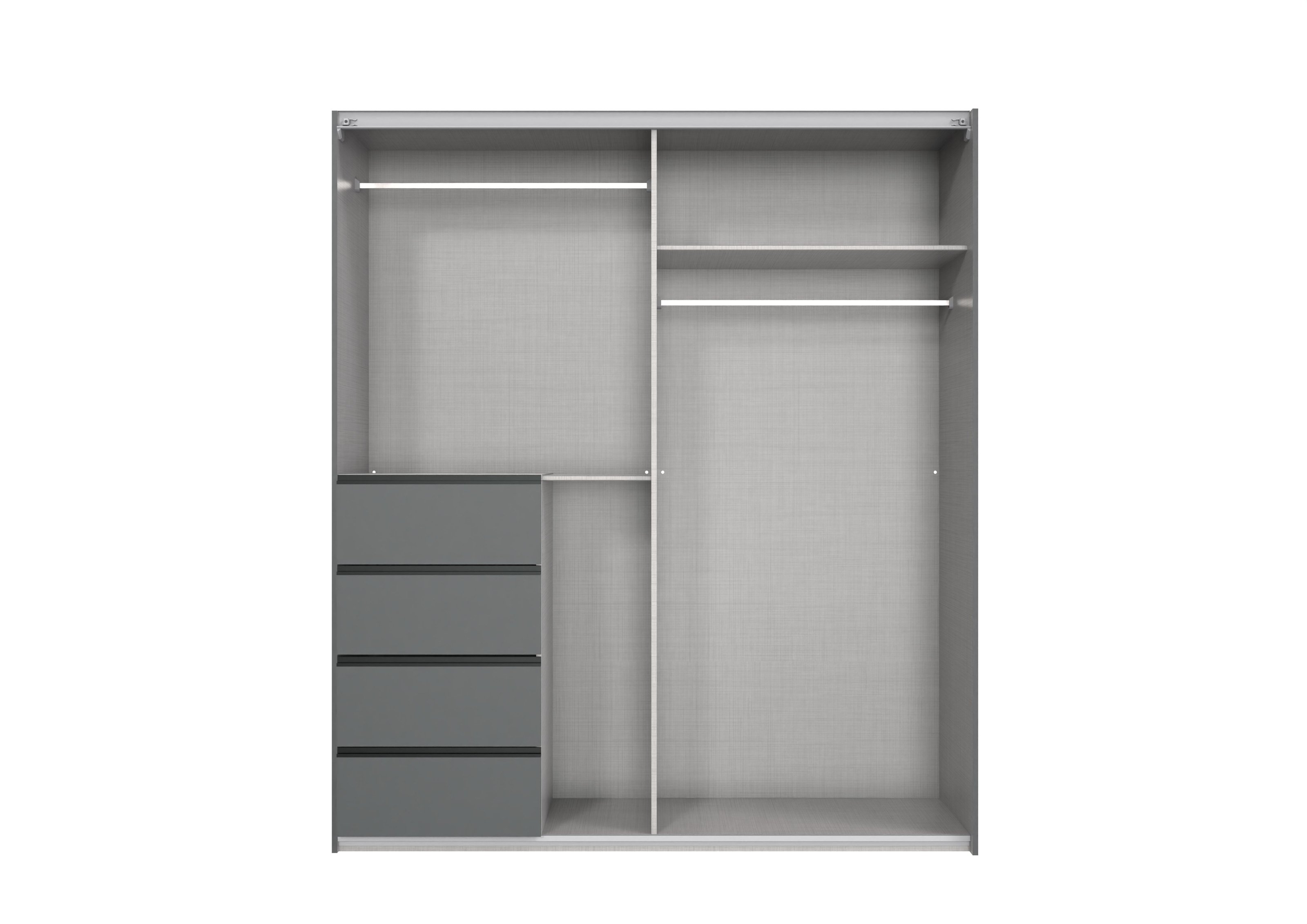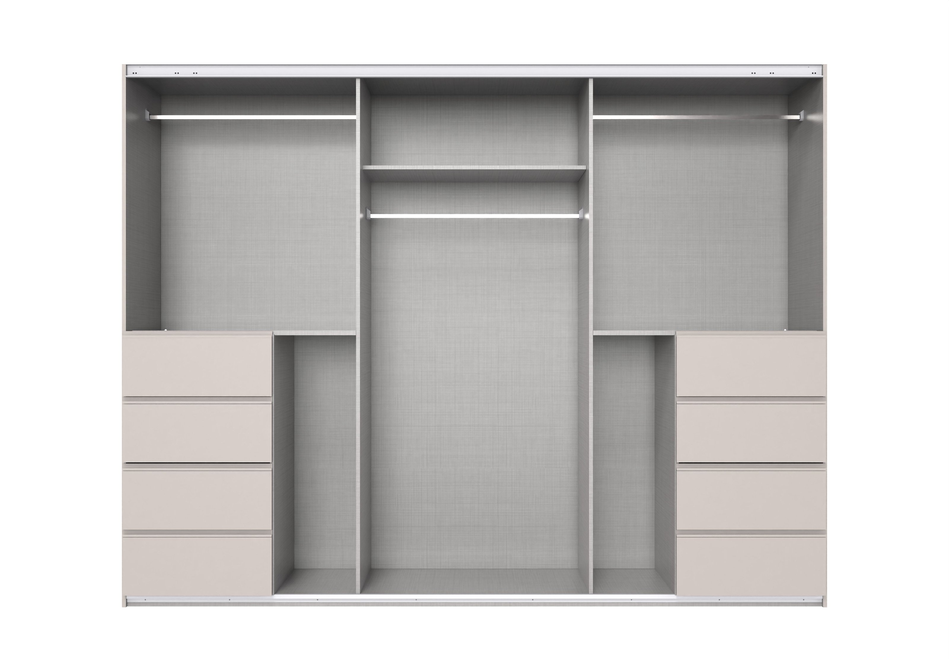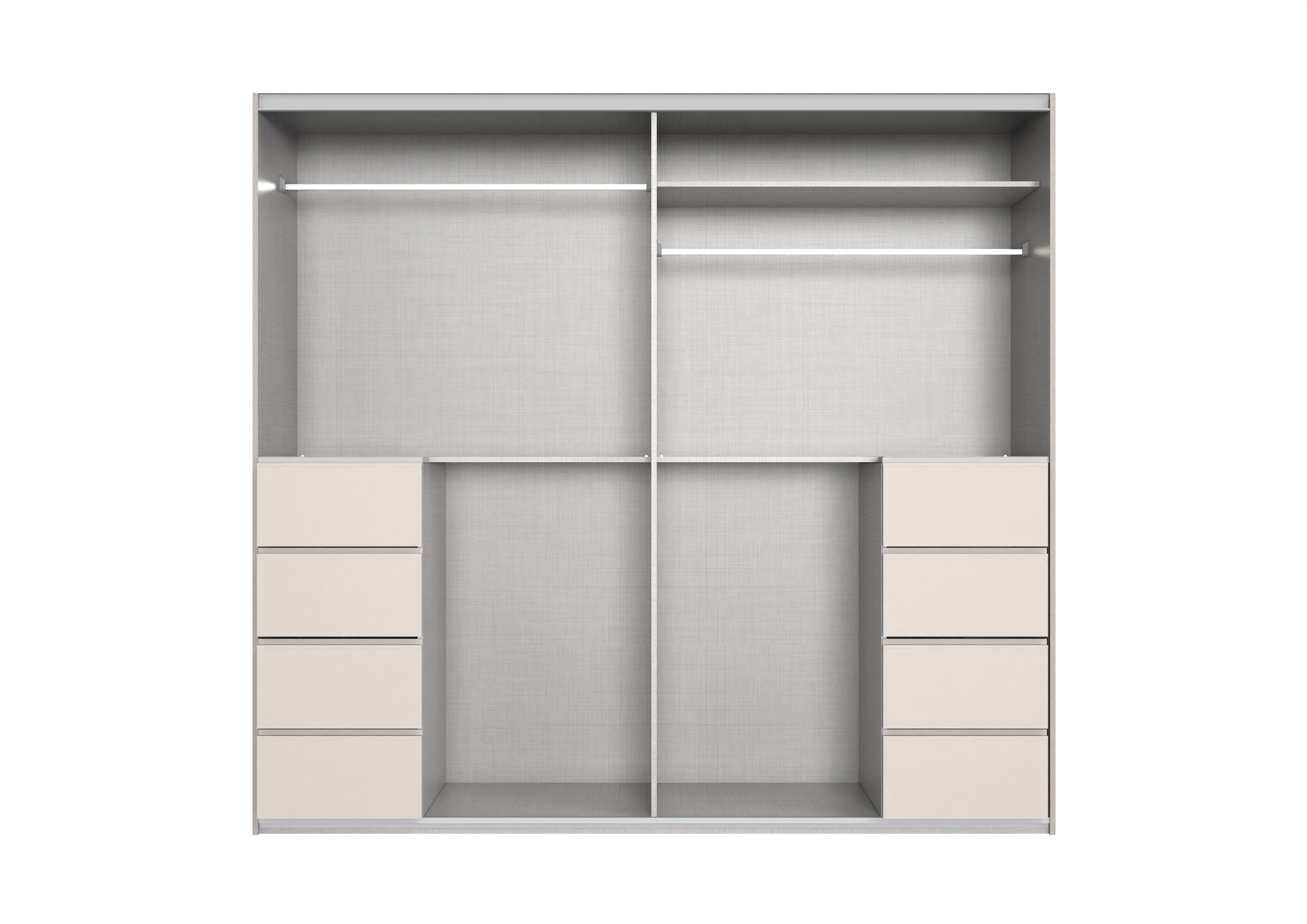 Der BALI Schwebetürenschrank verfügt über acht Schubladen für zusätzliche Stauraumlösungen.