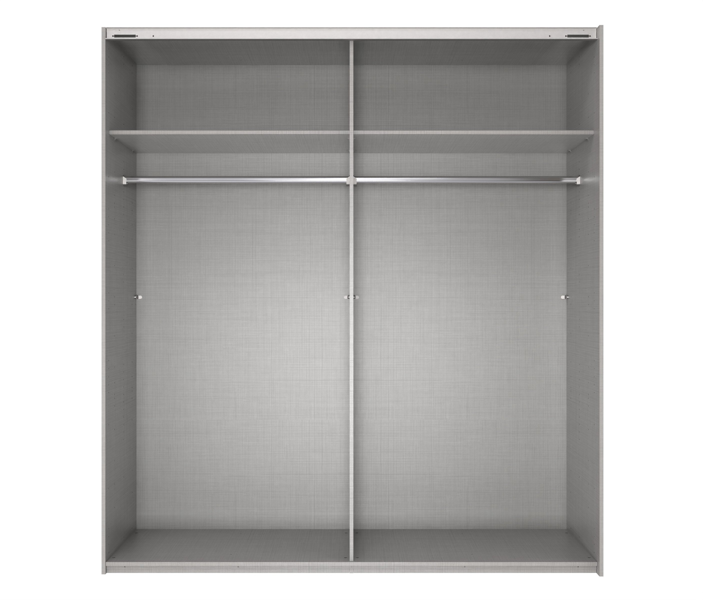 Im Inneren überzeugt KATAR mit einer durchdachten Aufteilung: Zwei Einlegeböden bieten strukturierte Ablageflächen für Kleidung oder Aufbewahrungsboxen, während zwei Kleiderstangen ausreichend Platz für Hemden, Blusen, Jacken oder Kleider bieten. So bleibt Ihre Garderobe stets übersichtlich und griffbereit. Die drei Schwebetüren gleiten platzsparend zur Seite, sodass der Schrank auch in Räumen mit begrenztem Platz optimal genutzt werden kann.