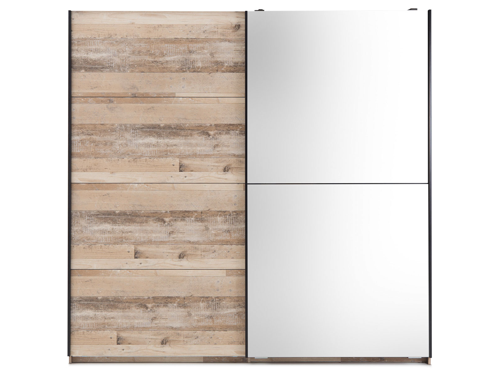 Hinter 1 Spiegelschwebetür und 1 Holzschwebetür stehen dir 2 Konstruktionsböden und 2 Kleiderstangen zur Verfügung, sodass du deine Kleidung flexibel zwischen Hänge- und Faltware aufteilen kannst. Der Verkauf erfolgt ohne Dekoration und Beimöbel, sodass du den Schrank nach deinen eigenen Vorstellungen kombinieren kannst.