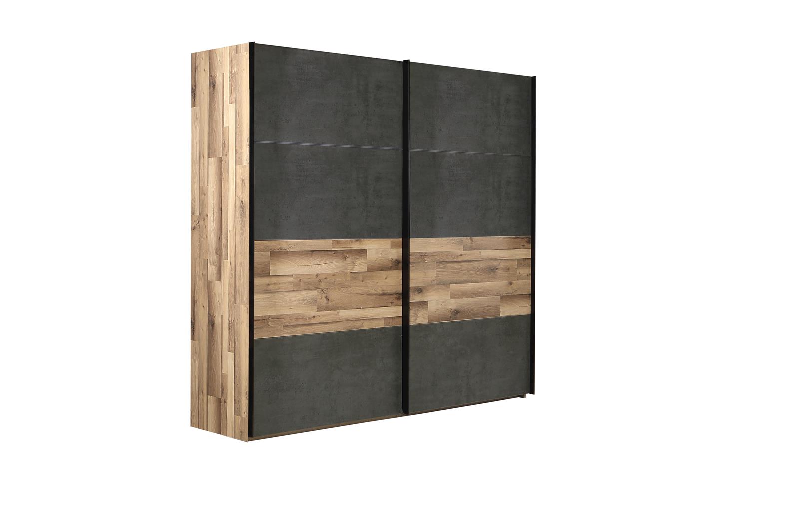 Moderner Schwebetürenschrank Rhodos II in Stabeiche und Betonoptik