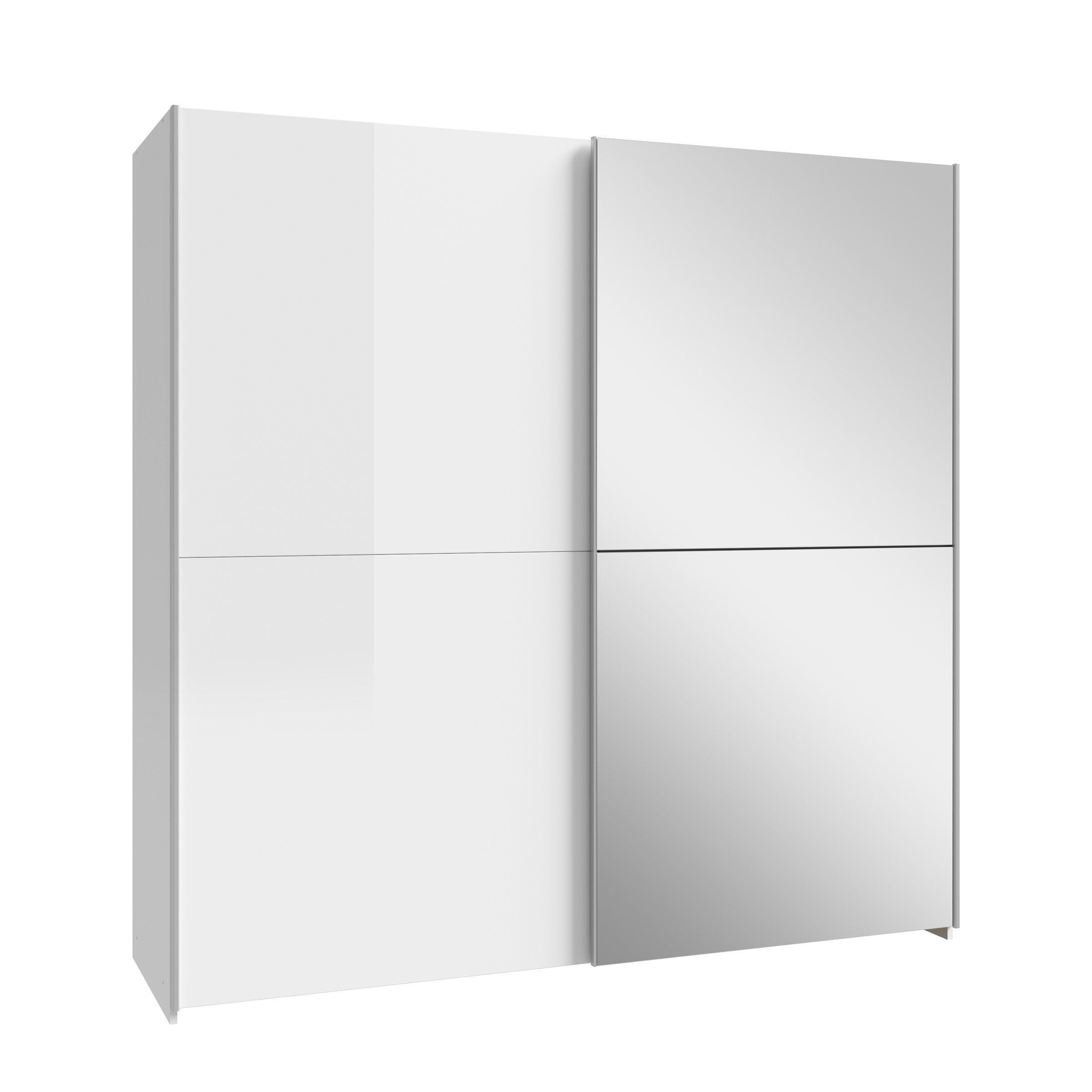 [cName] => Schwebetürenschrank >Schach & Matt< 2 Stangen, 2 Böden, Weiss / Spiegel - 190,1x190,5x61,2cm (B/H/T)