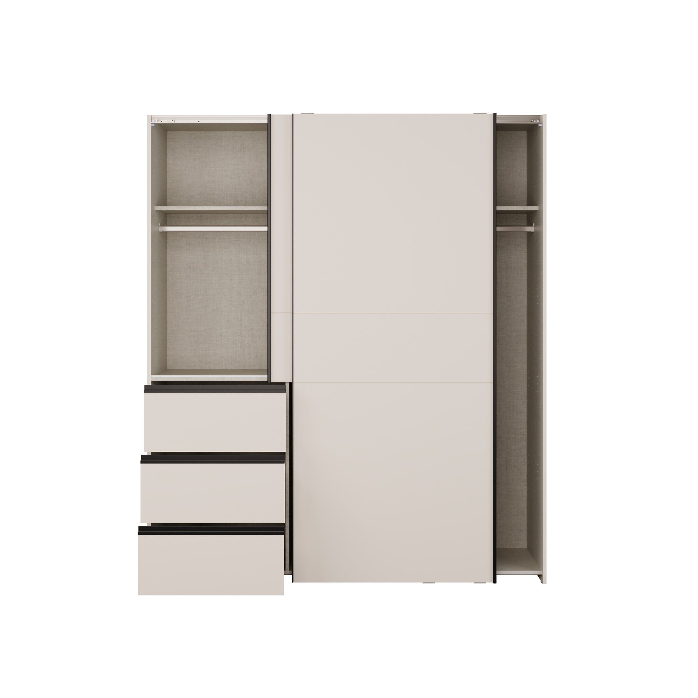 Der Kleiderschrank WINN 2 vereint modernes Design mit durchdachter Funktionalität und ist die perfekte Lösung für Ihr Schlafzimmer. In elegantem Sand gehalten, fügt sich der Schrank harmonisch in verschiedene Einrichtungsstile ein und setzt zugleich stilvolle Akzente.