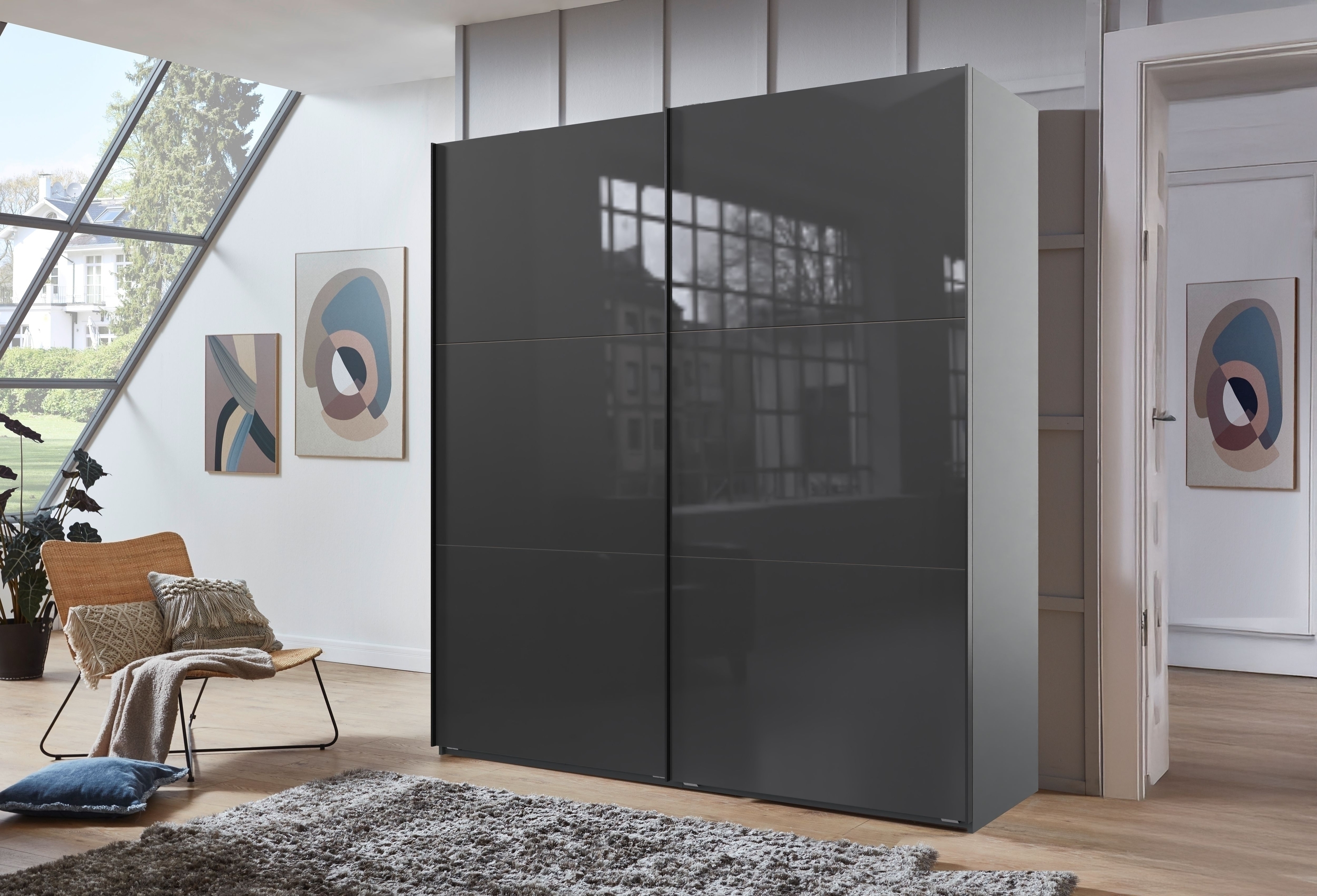 [cName] => Schwebetürenschrank >indiana C< in GRAPHIT + GLASS GREY - 200x216x65cm (BxHxT)