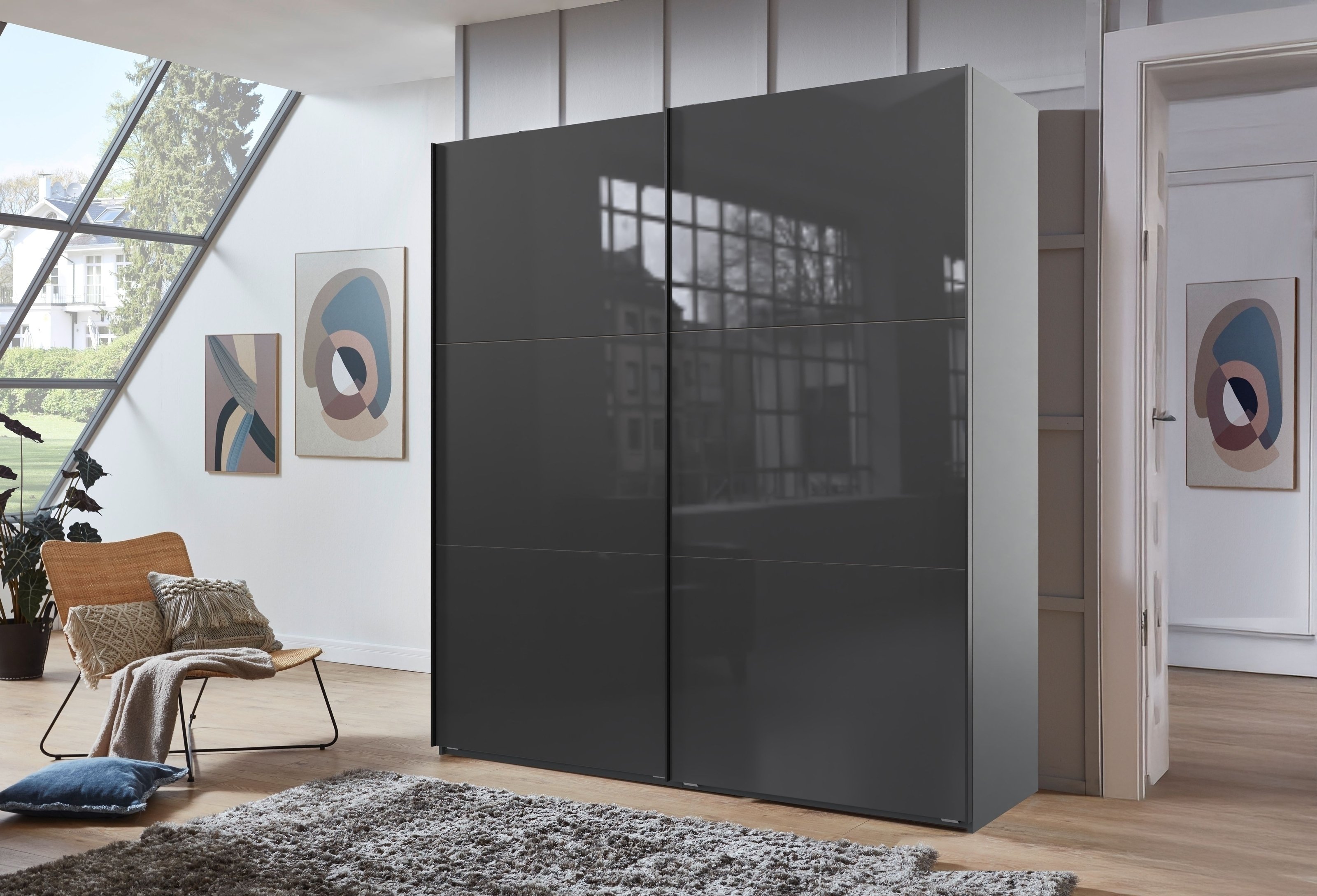 Der Schwebetürenschrank Indiana C vereint eine hochwertige Optik mit praktischer Funktionalität und ist die ideale Lösung für moderne Schlafzimmer. Mit seinem graphitfarbenen Korpus und den Türen in Graphit mit Glass Grey fügt er sich harmonisch in zeitgemäße Einrichtungsstile ein und schafft dabei großzügigen Stauraum ohne aufdringlich zu wirken.