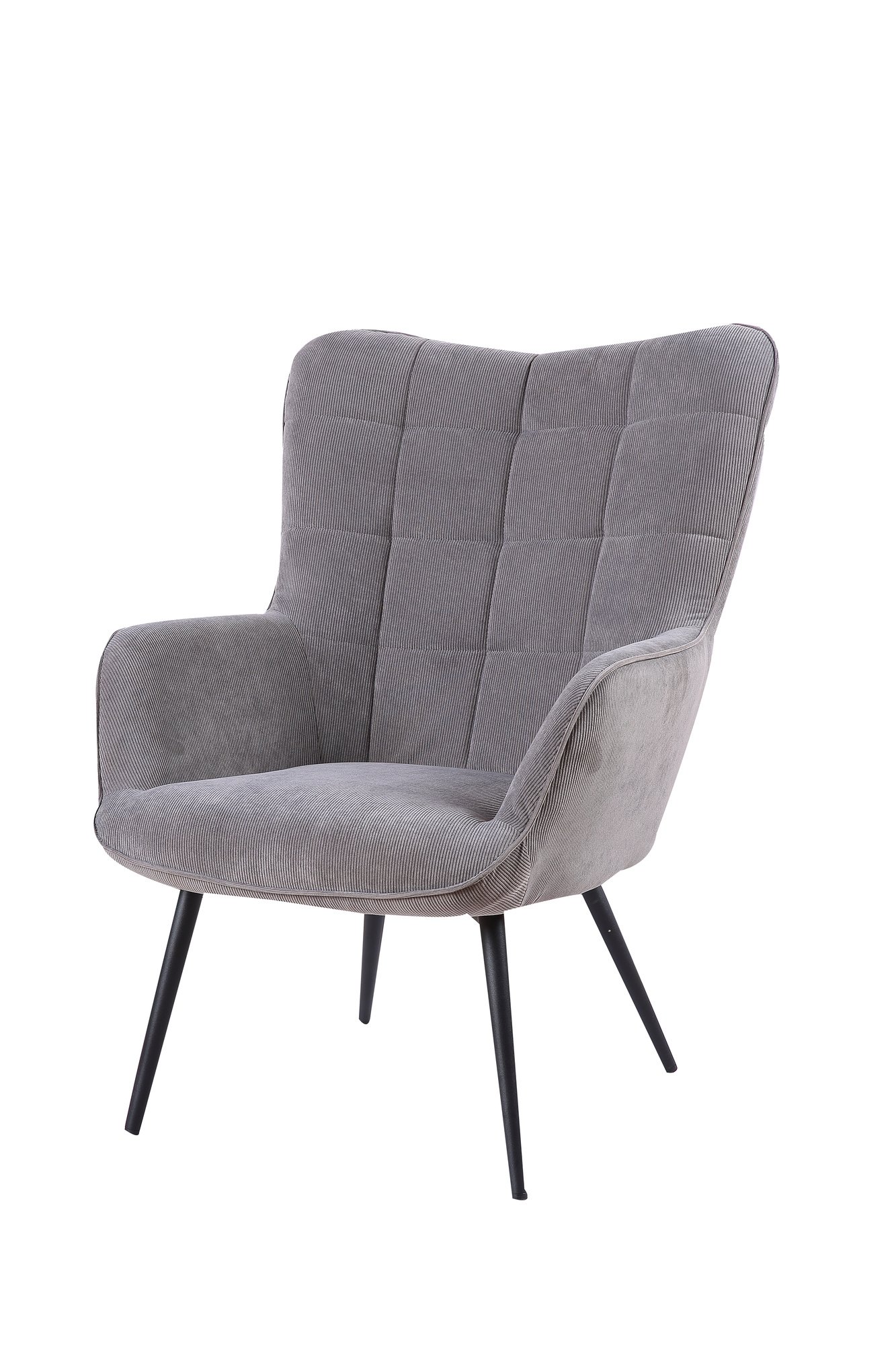Der hochwertige Cordstoff in Grau verleiht dem Sessel einen trendigen Look und lässt sich vielseitig kombinieren.