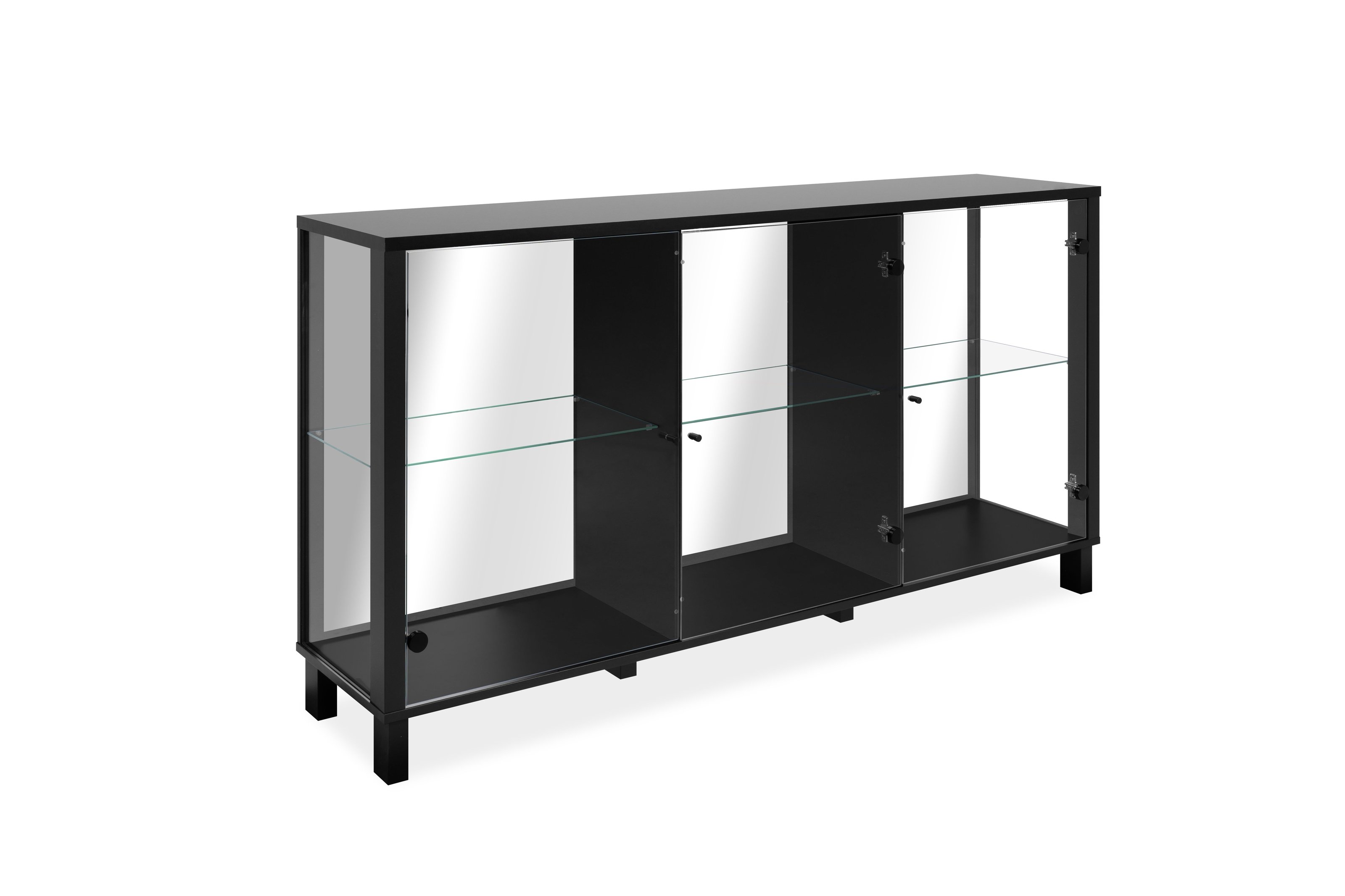 [cName] => Sideboard >Albi< Vitrinen-Sideboard in Schwarz / Glas / Spiegel - 160x85x37,5cm (BxHxT)