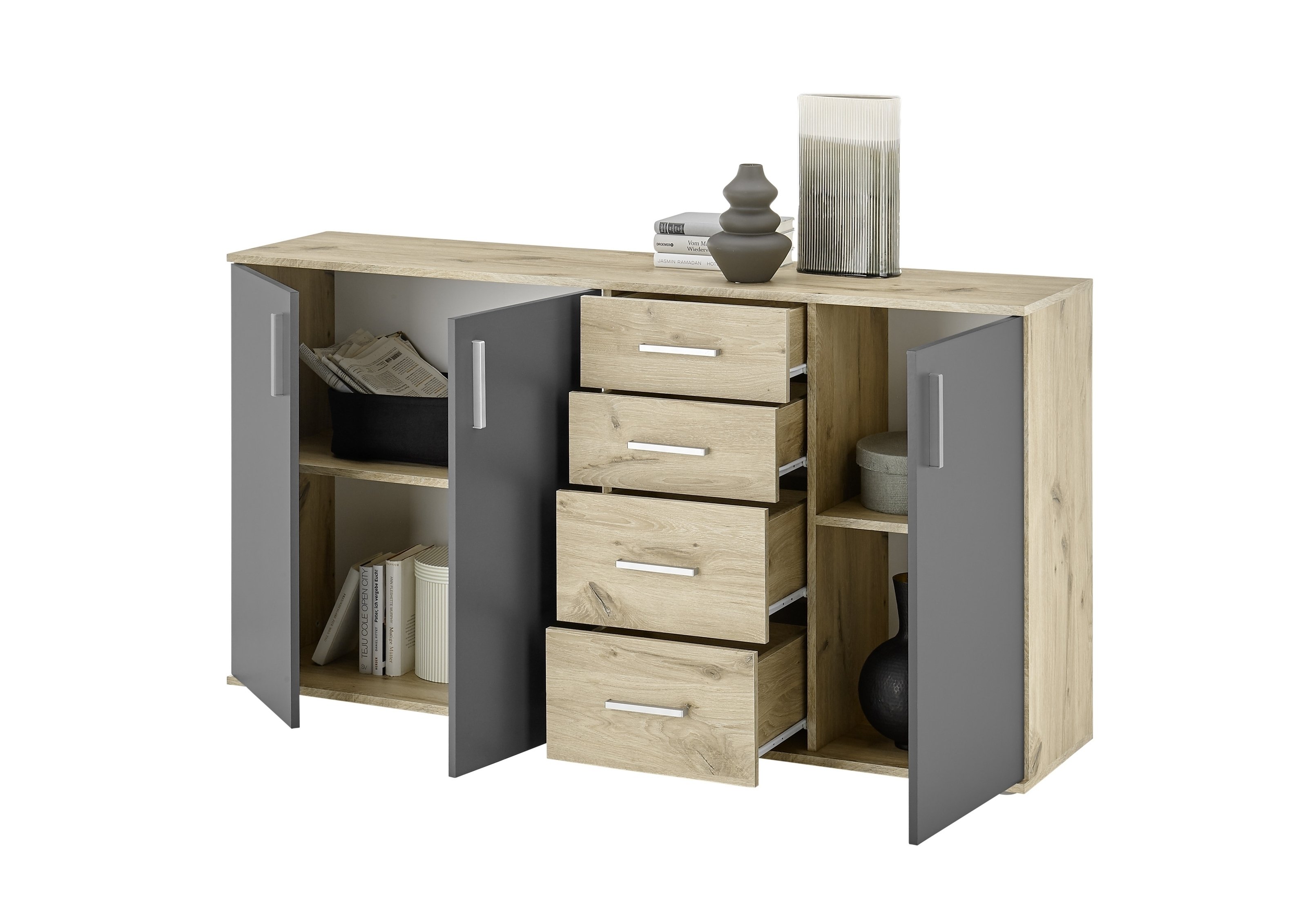 [originalName] => Sideboard >BC 1040< 3 Türen, 4 Schubladen, viking oak Dekor / grau - 160x84x35cm (BxHxT)