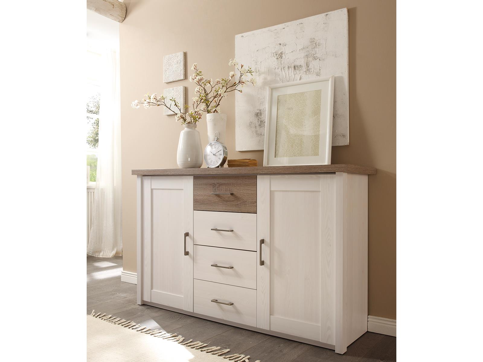 Das Sideboard "Lebbie II" vereint funktionalen Stauraum mit einer charmanten Landhausoptik. Mit seiner komfortablen Höhe und der durchdachten Aufteilung ist es wie geschaffen für das Wohnzimmer und andere Wohnbereiche, in denen sowohl Ordnung als auch ein harmonisches Ambiente gefragt sind.