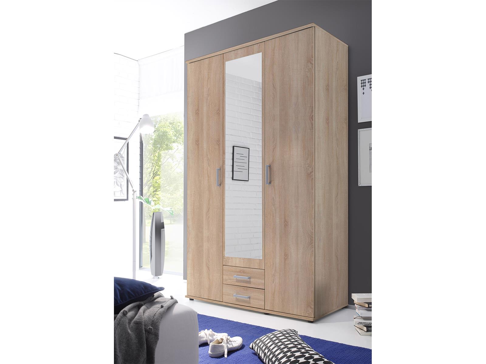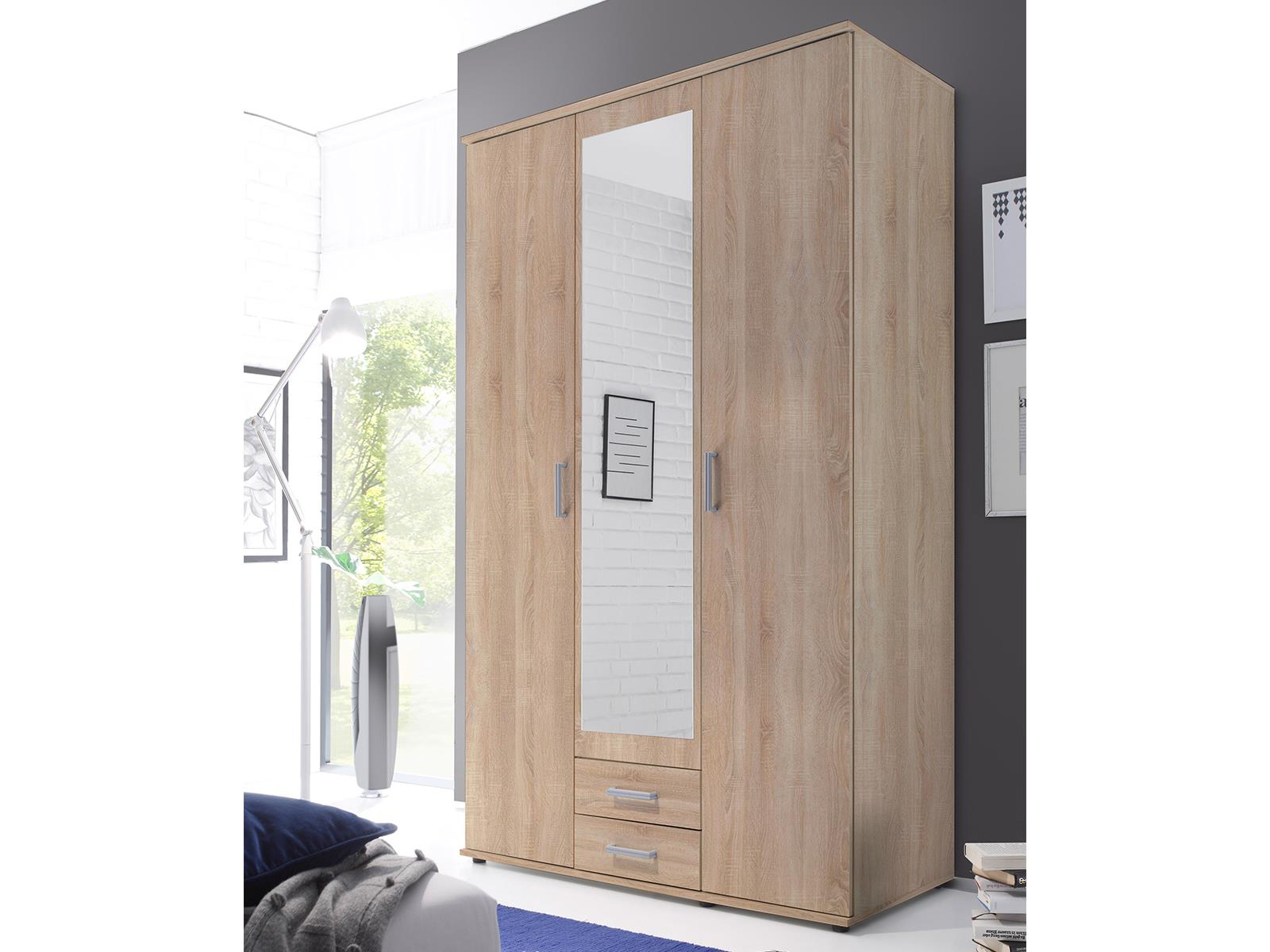 [metaDescription] => Moderner Kleiderschrank aus Spanplatte in Sonoma-Eiche Nachbildung mit 2 Holztüren, 1 Spiegeltür, 2 Schubkästen, 1 Konstruktionsboden, 3 Einlegeböden und 1