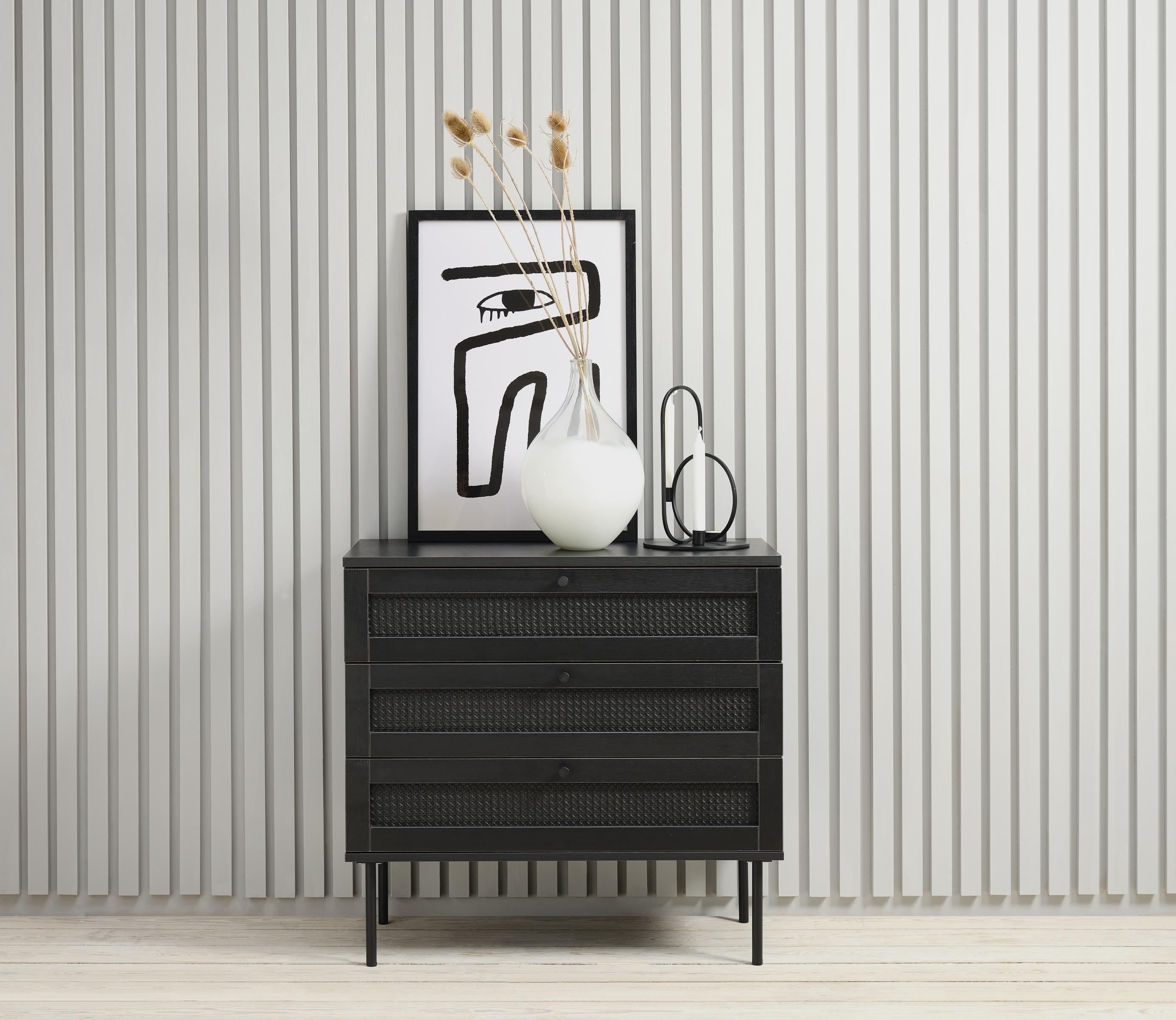 Die Ausführung in schwarzer Eiche-Nachbildung unterstreicht einen modernen Wohnstil und setzt elegante Akzente.
