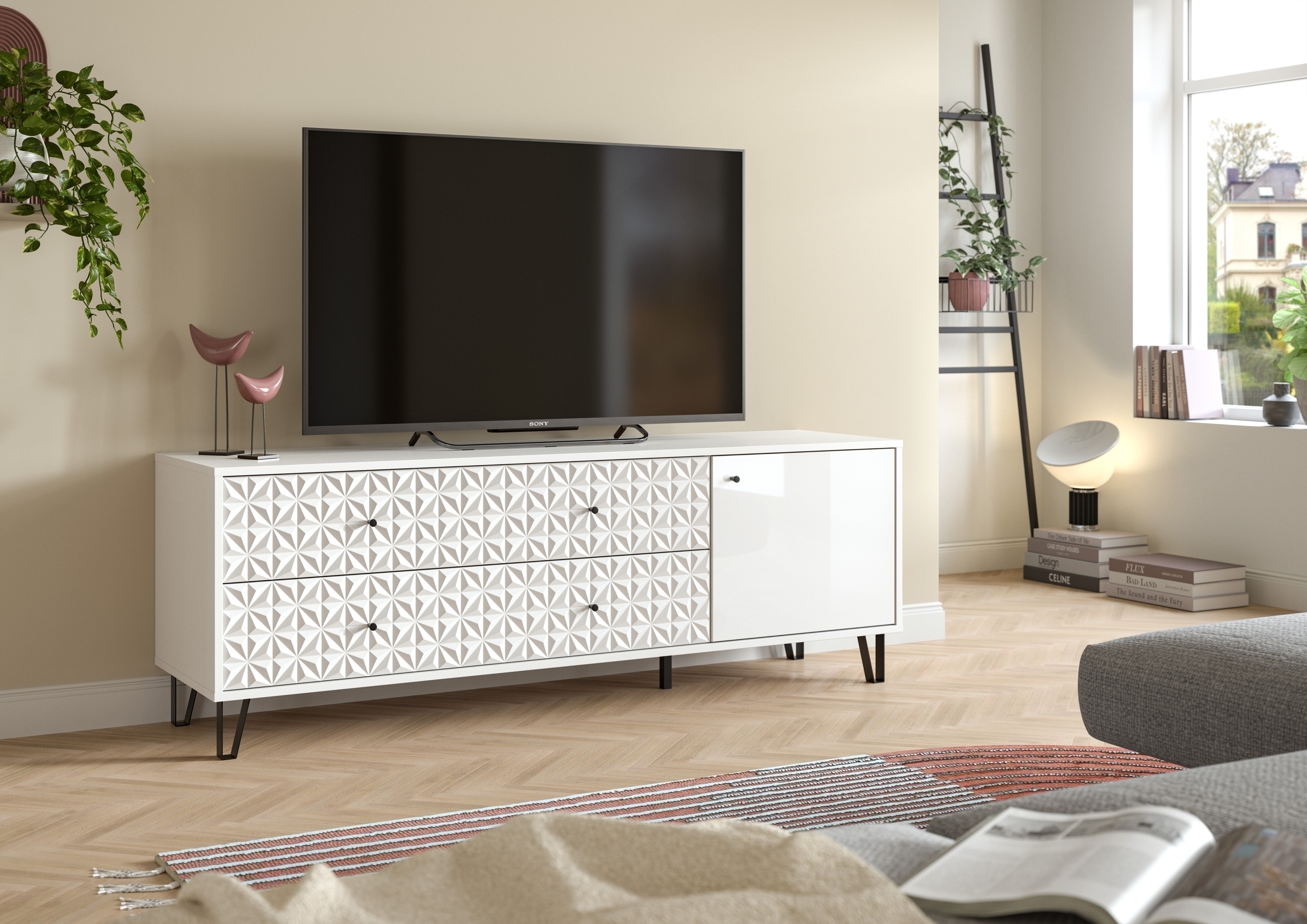 Modernes Sideboard mit weißem Melamin – Stauraum für Wohnzimmer, Flur & Co.