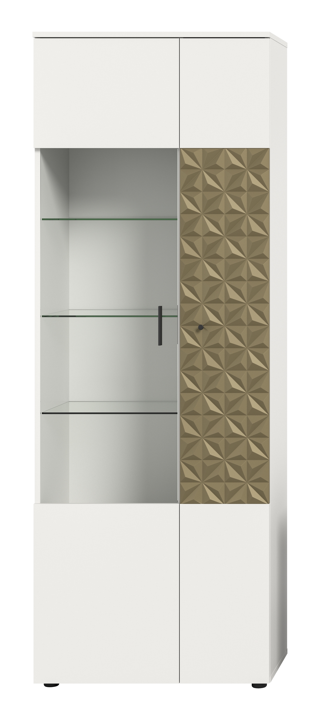 [BulletPoints] => Breite/Höhe/Tiefe: 70x195x37 cm cm;hochwertige Fronten mit goldener Absetzung;Glastür und 3 Glasböden;Qualität/Pflege: Hochwertige Materialien gewährleisten Langlebigkeit und einfache Reinigung;Nachhaltigkeit: Das Möbel besteht aus FSC®-zertifiziertem Holzwerkstoff zum Schutz der Wälder