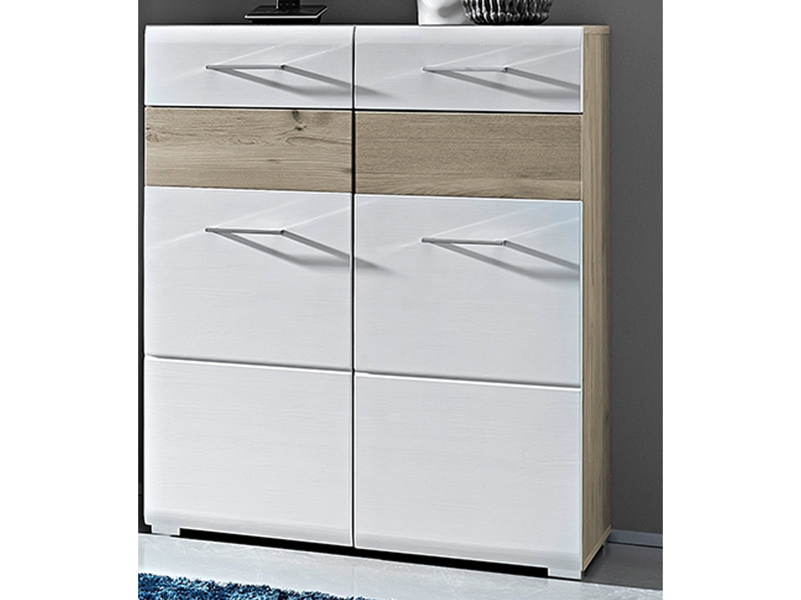Zwei Türen bieten Platz für Schuhe, Taschen oder Accessoires – perfekt für den Eingangsbereich.