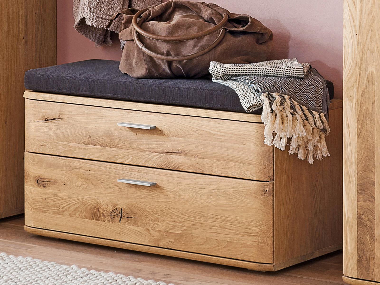 Garderobenbank "Nilo I" – moderne Sitzbank mit 2 Schubkästen und Massivholz-Front