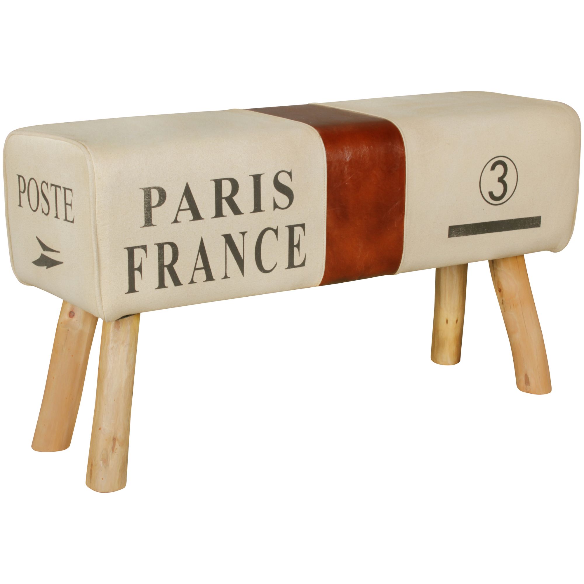 Die Sitzbank im sportlichen Turnbock-Design bringt kultige Retro-Optik in Ihr Zuhause und dient zugleich als praktische Sitzgelegenheit. Mit ihrem markanten Aufdruck und der Kombination aus Canvas und Echtleder wird sie schnell zum Hingucker in Flur, Schlafzimmer oder Wohnbereich.