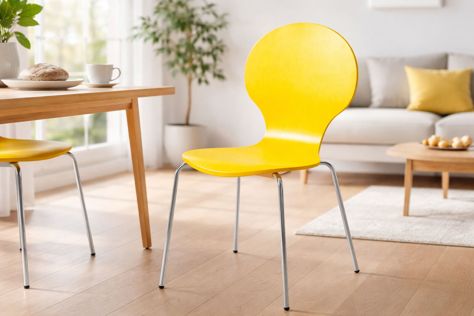 Stapelstuhl >Marcus< in Gelb – Design-Stuhl mit Schichtholz-Sitz und stapelbar bis 4 Stück